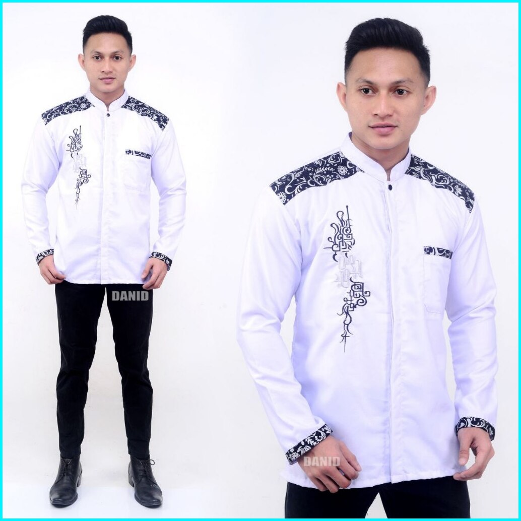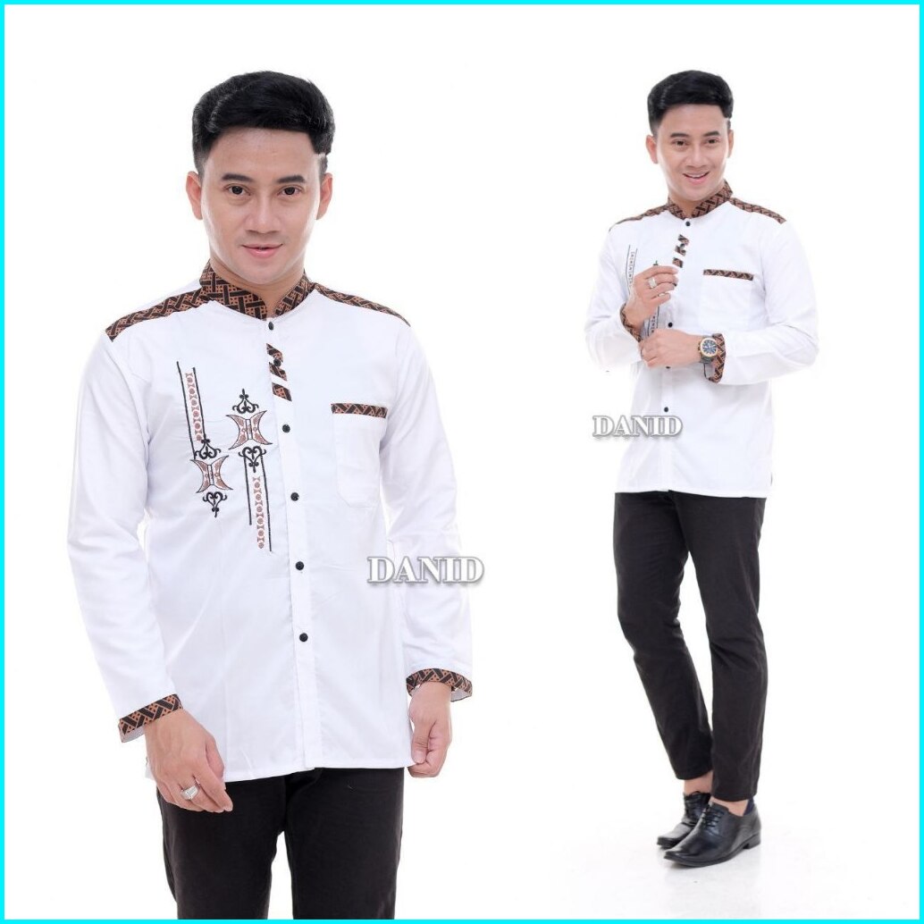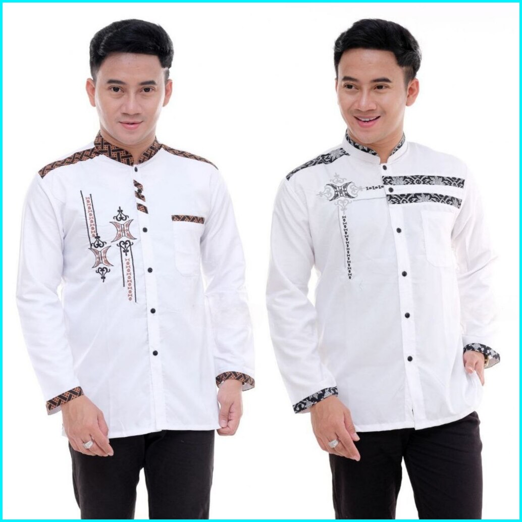 Terbaru Koko Lengan Panjang Kombinasi Bordir Material Cotton Adem Fashion Muslim Pria