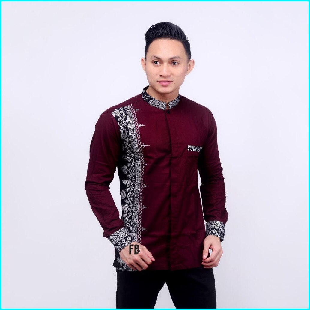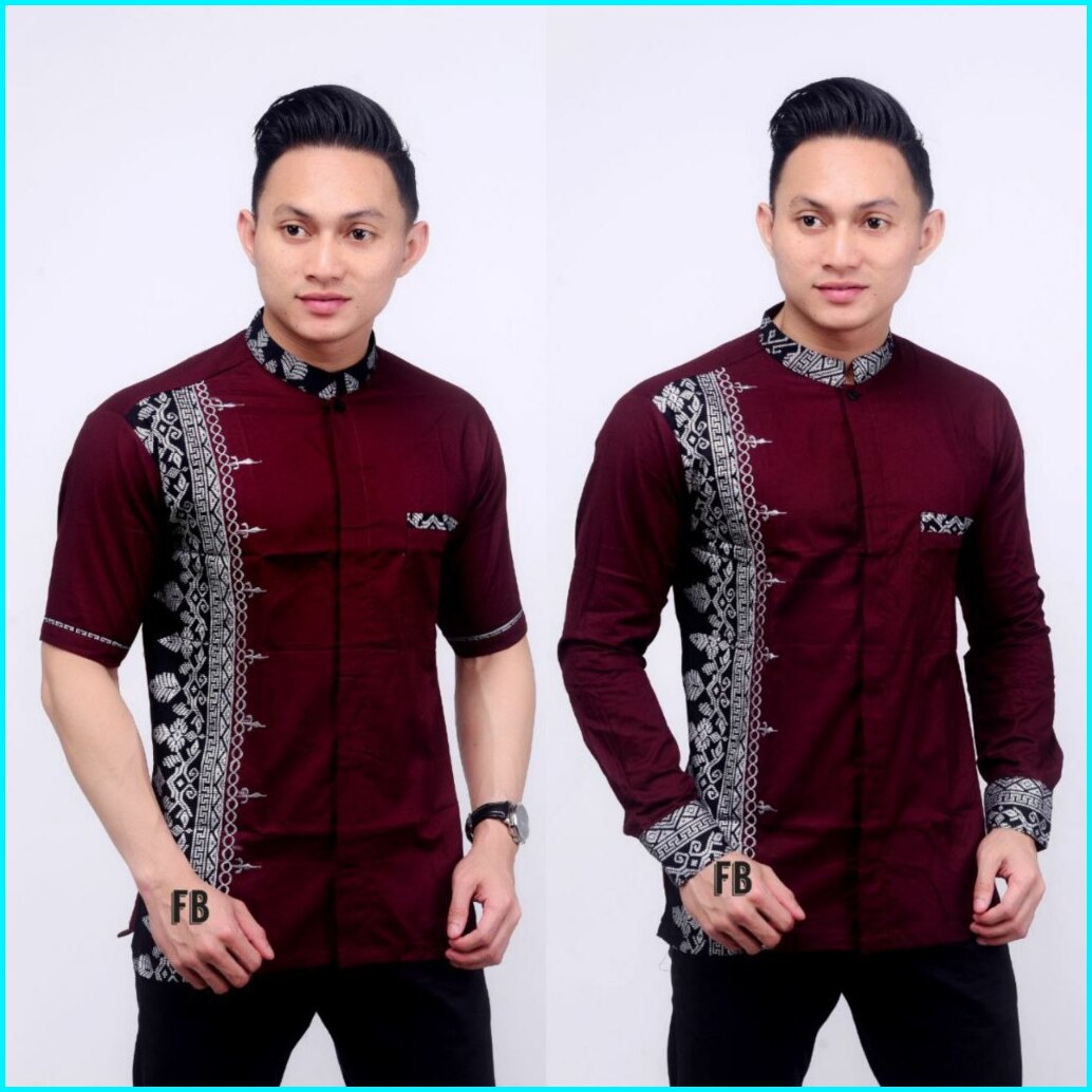 Baju Koko Pria Lengan Pendek Panjang Dewasa Burgundy