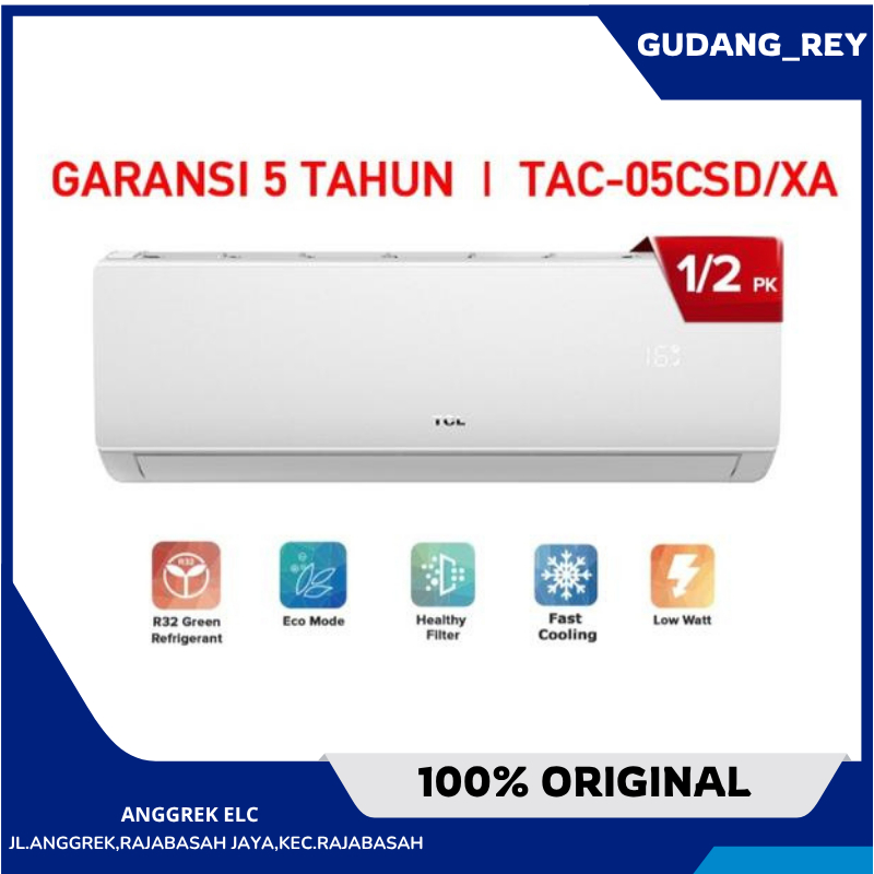 TCL AC STANDARD LOW WATT 1/2 PK TAC 05 CSD/XBS SUPER QUIET GARANSI RESMI