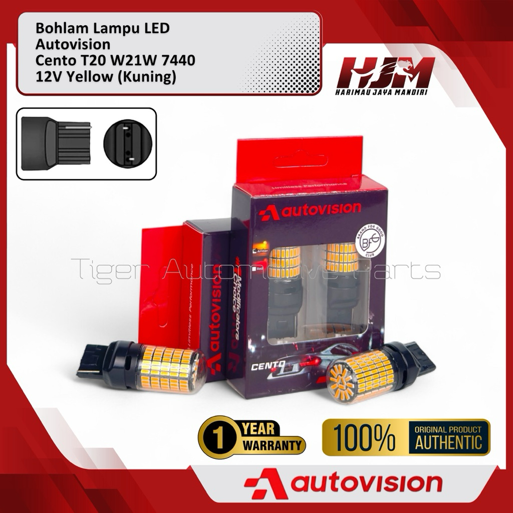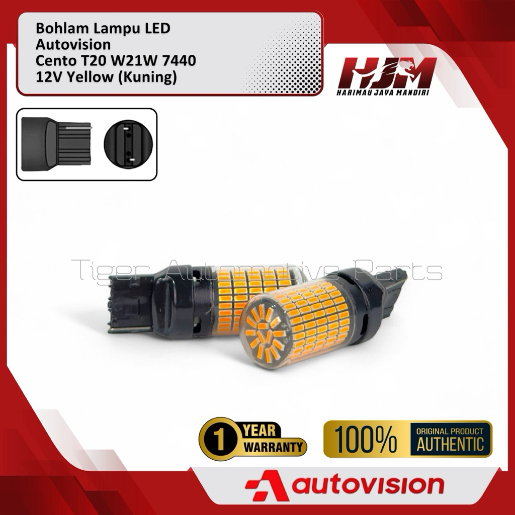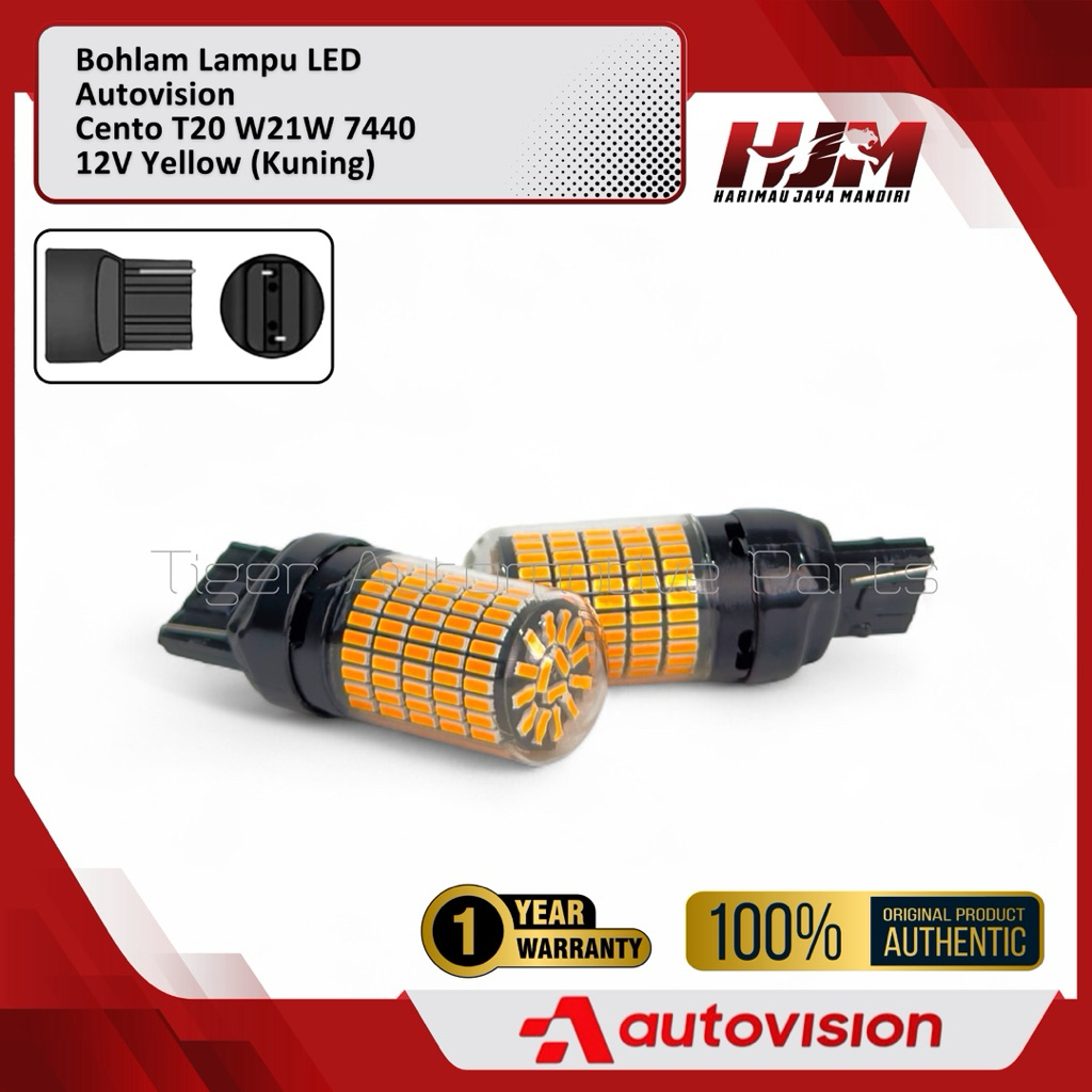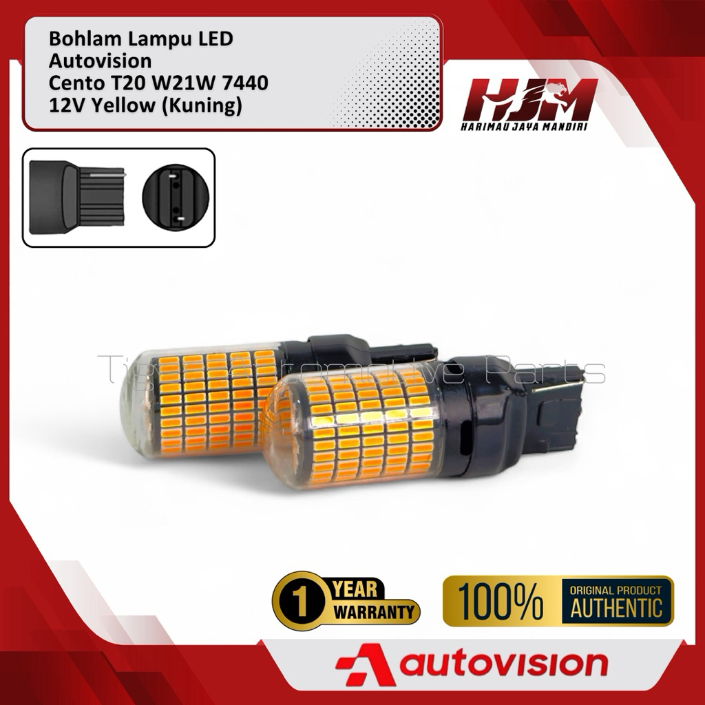 Bohlam LED T20 W21W 7440 12V Yellow Autovision Cento - Lampu Tusuk Tancap Kaki 1 Sein Sen Kuning Original