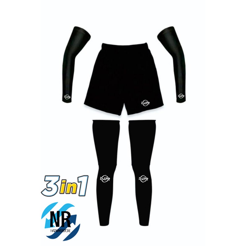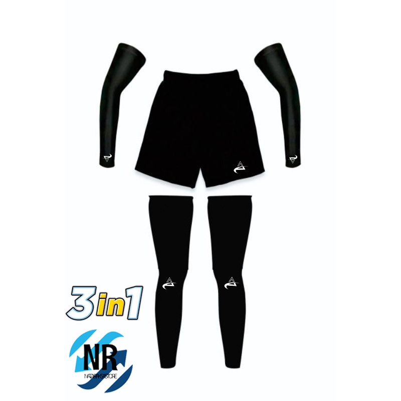 1set Setelan Manset Kaki Leg Sleeve + Manset Tangan + Legging Pendek volly lari futsal olahraga