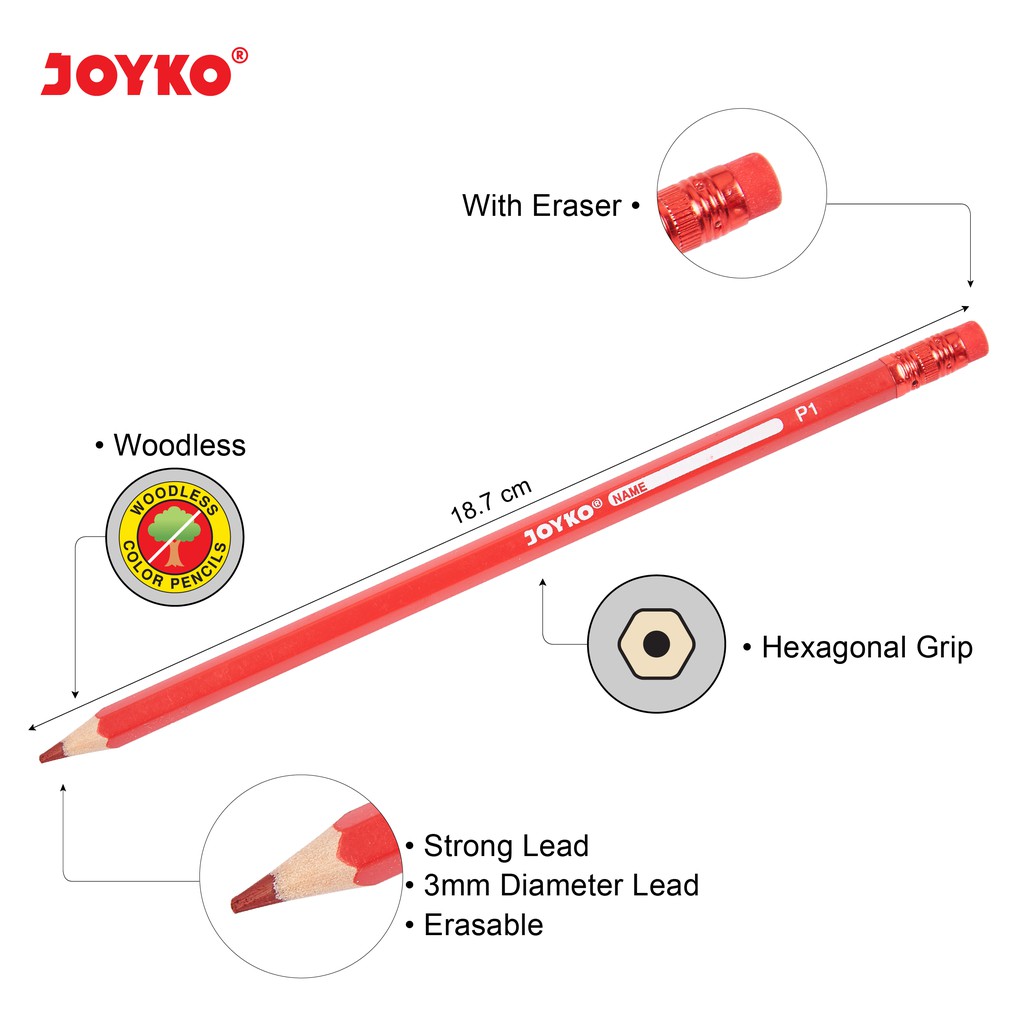 Joyko Pensil Warna Dapat Dihapus Erasable Color Pencils Hexagonal Grip