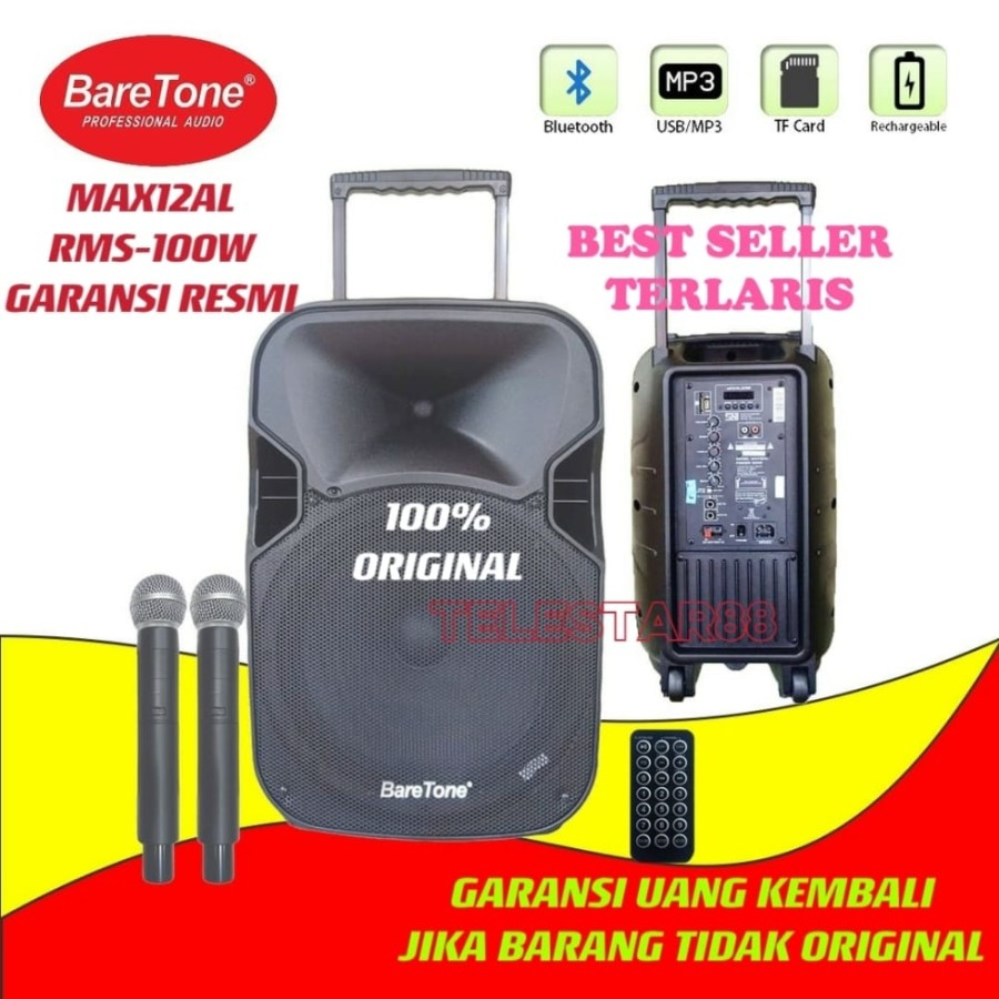 Speaker Aktif Portable 12 Inch Baretone MAX12AL Wireless Bluetooth Usb Mp3 Original