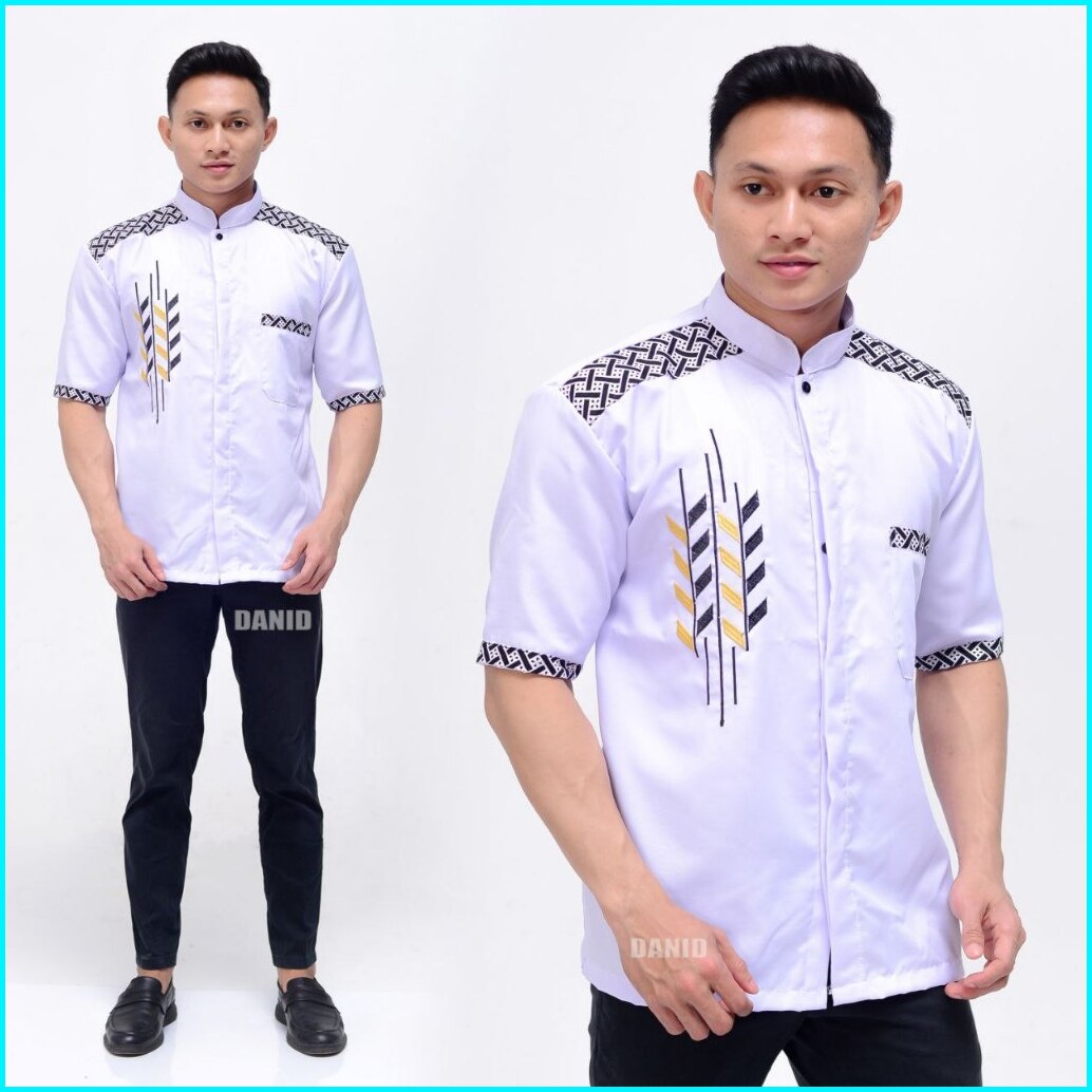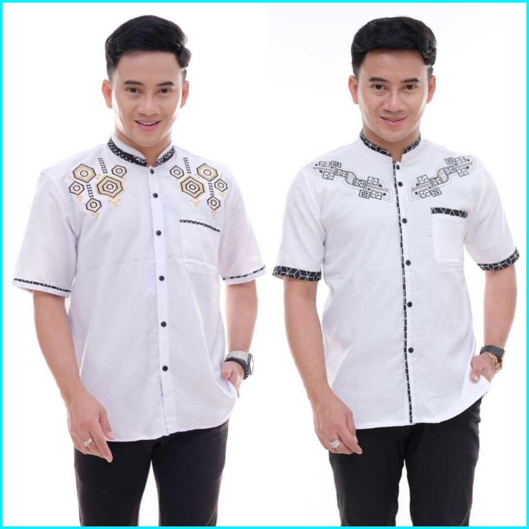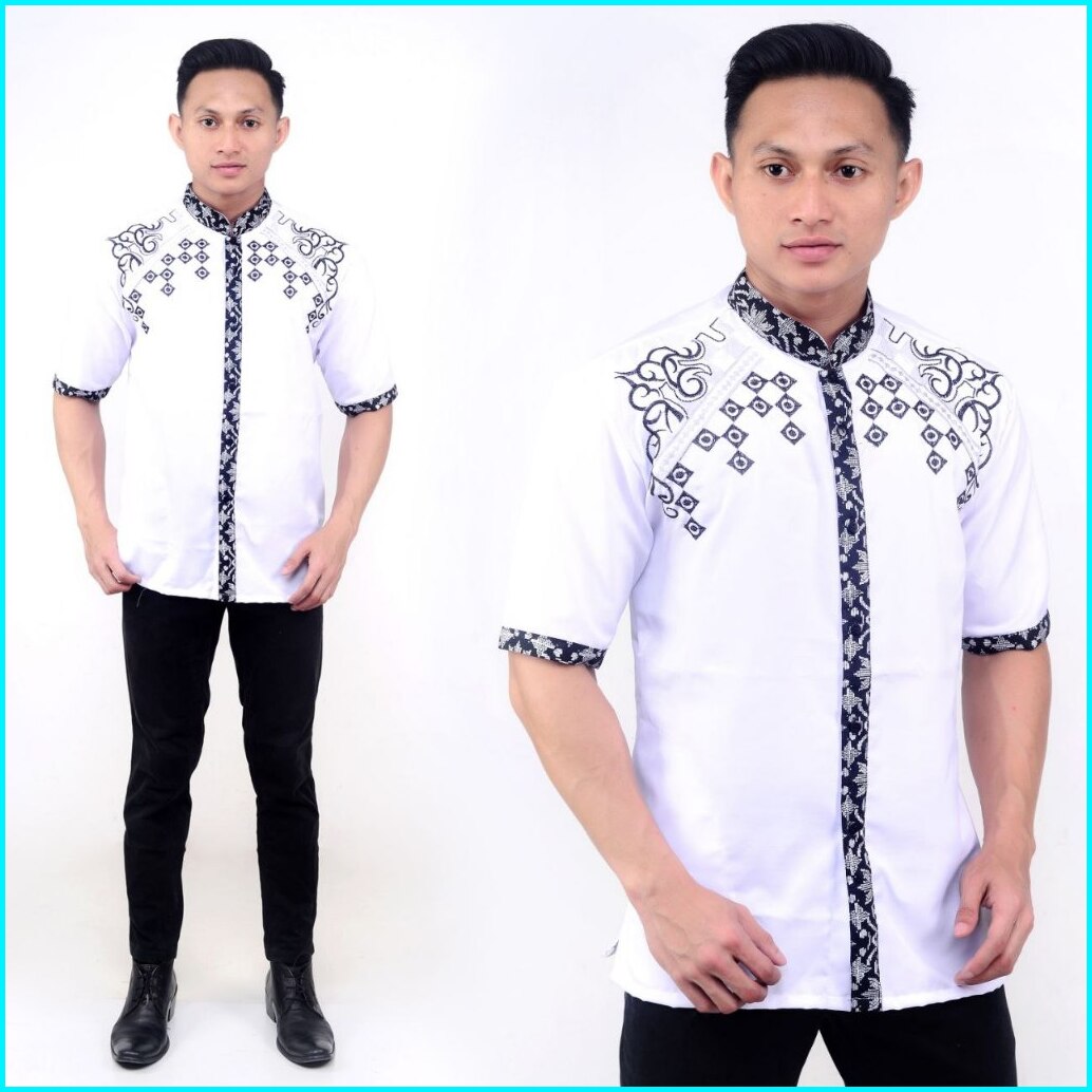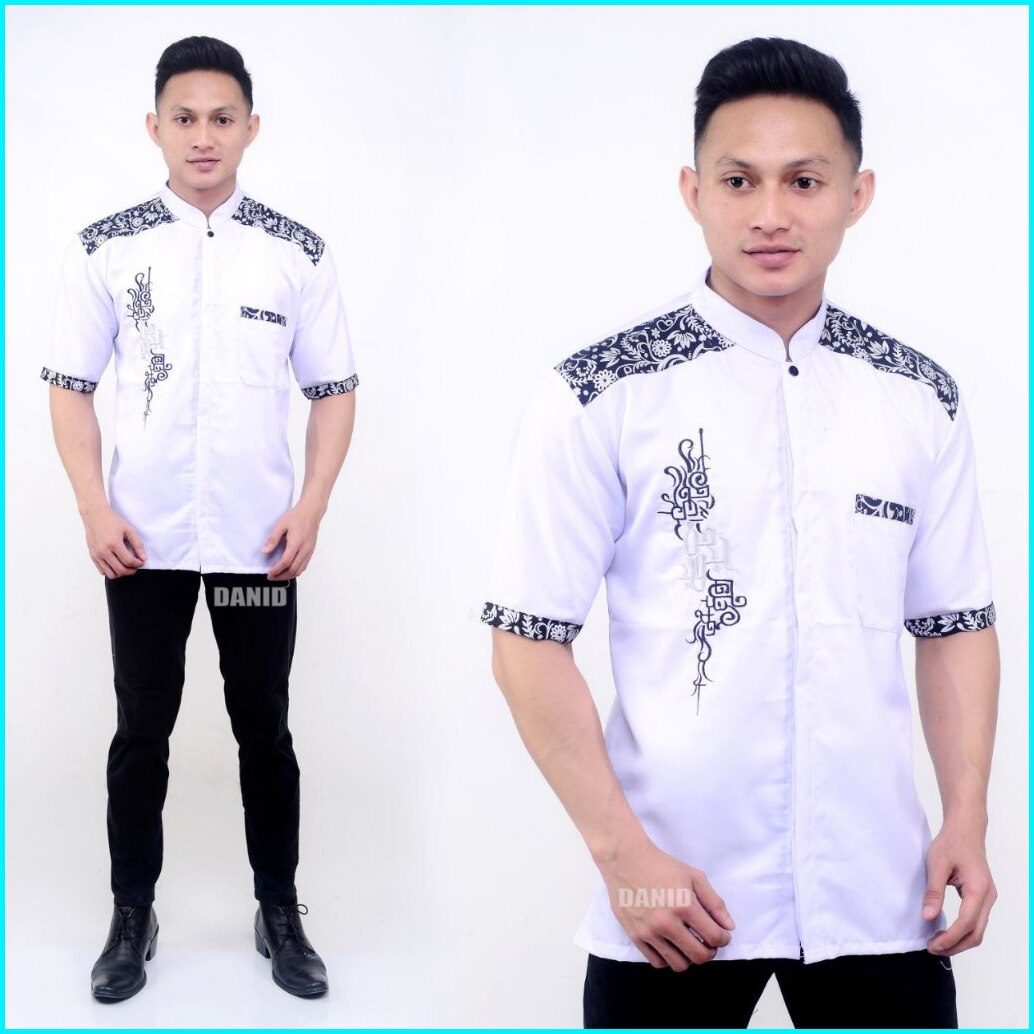 Baju Muslim Pria Modern Motif Batik Kombinasi Bordir