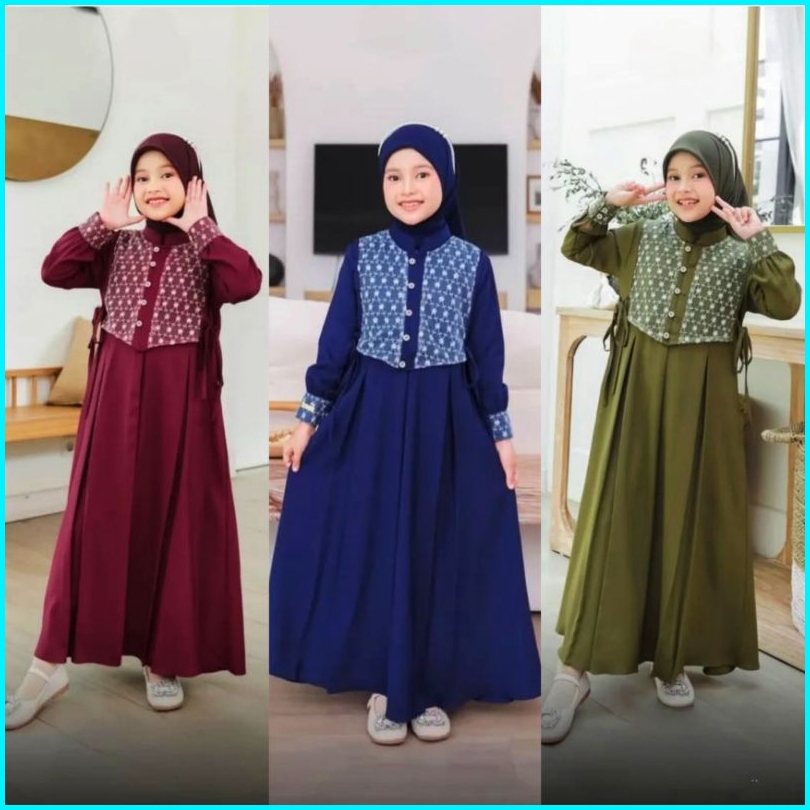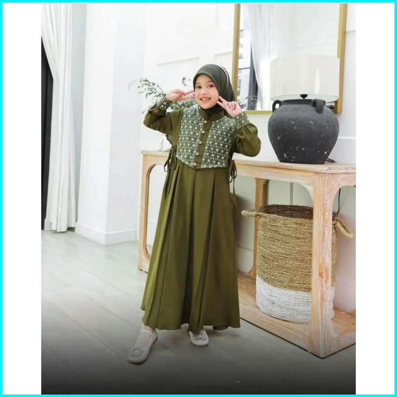 Shabira Kids Free Phasmina Uk M L Xl Usia 5-13 Thn Bahan Crinkle Mix Brukat Gamis Anak Perempuan