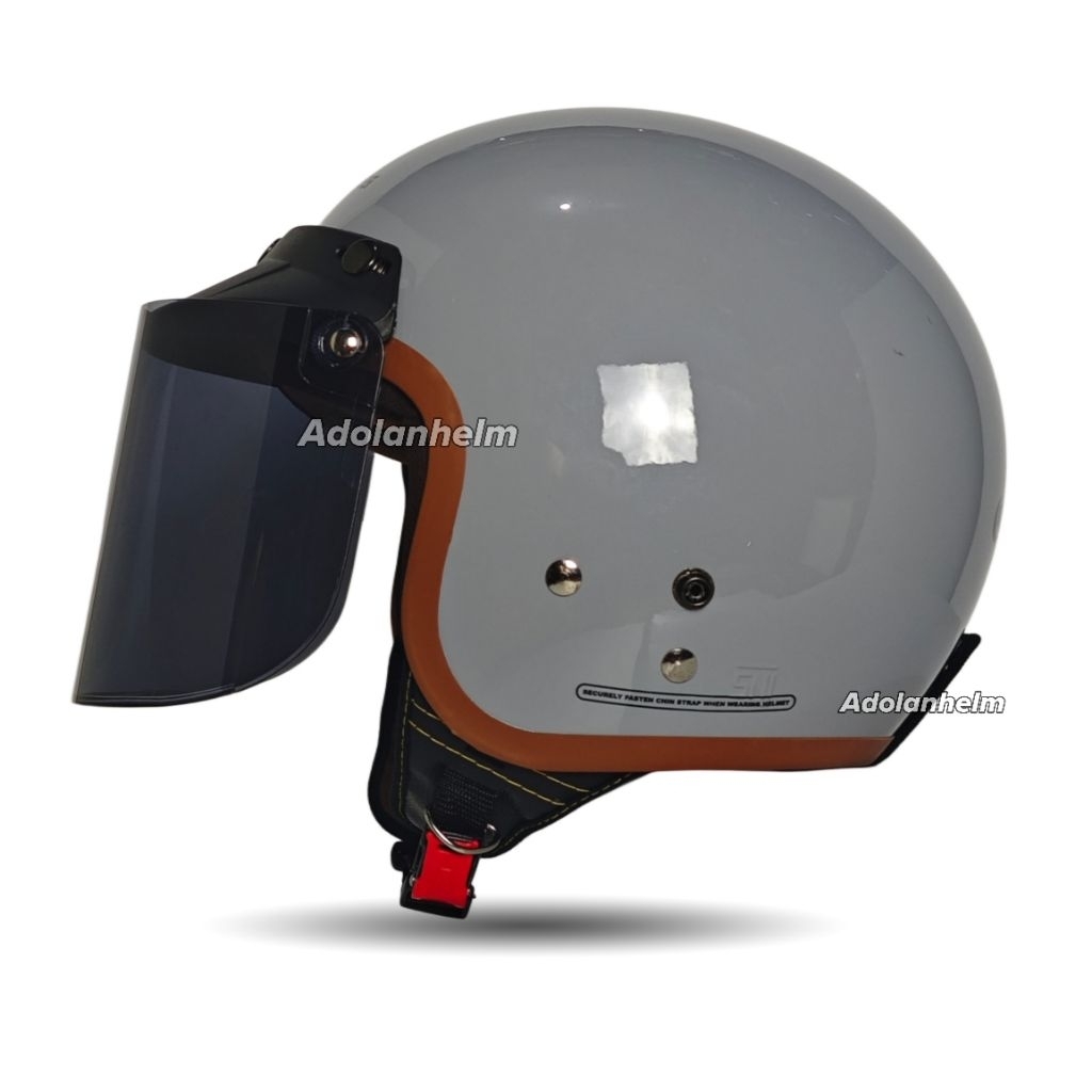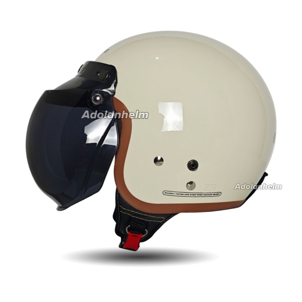 HELM BOGO RETRO 4ppi SNI CFM FULL LEHER SNI POLOS LIST COKLAT