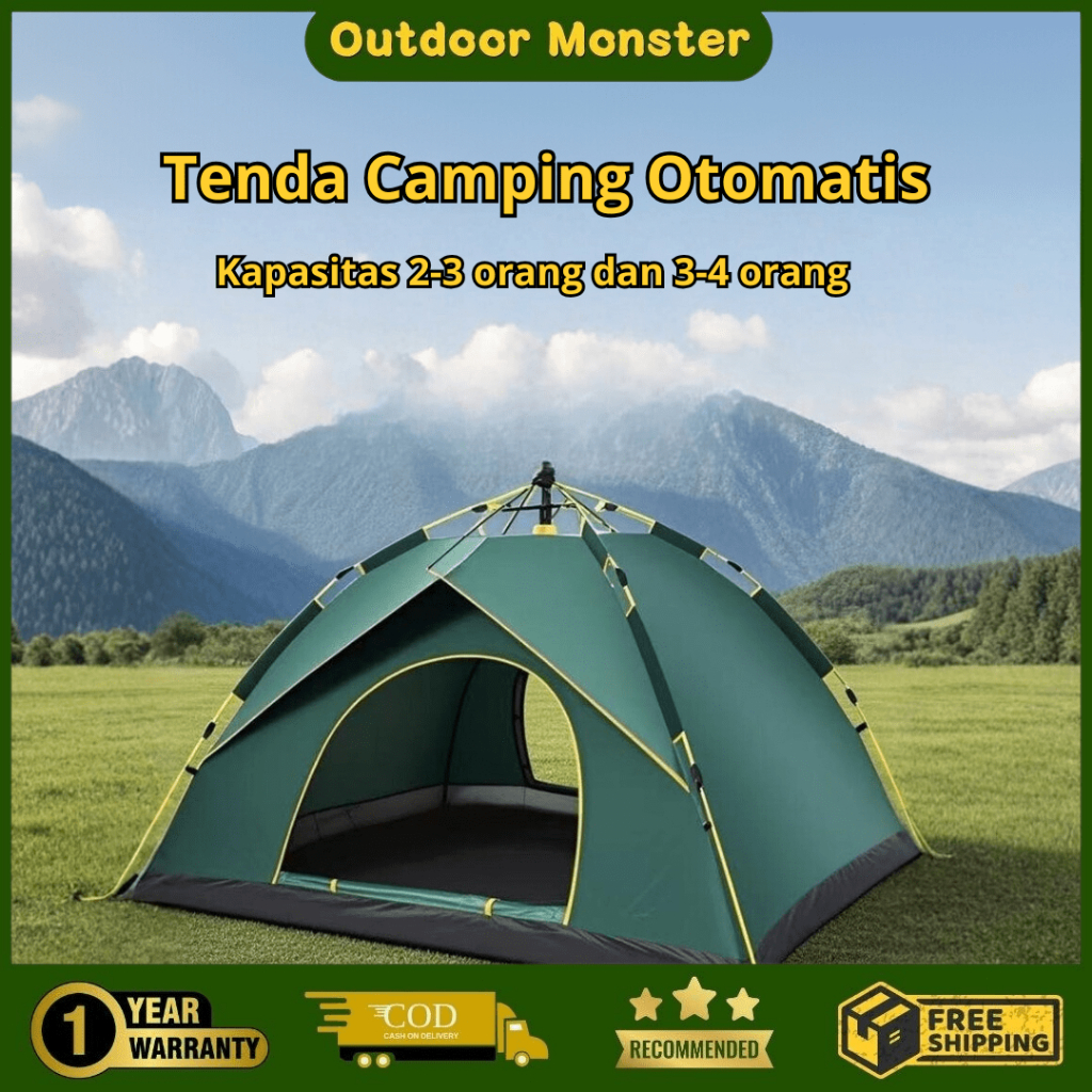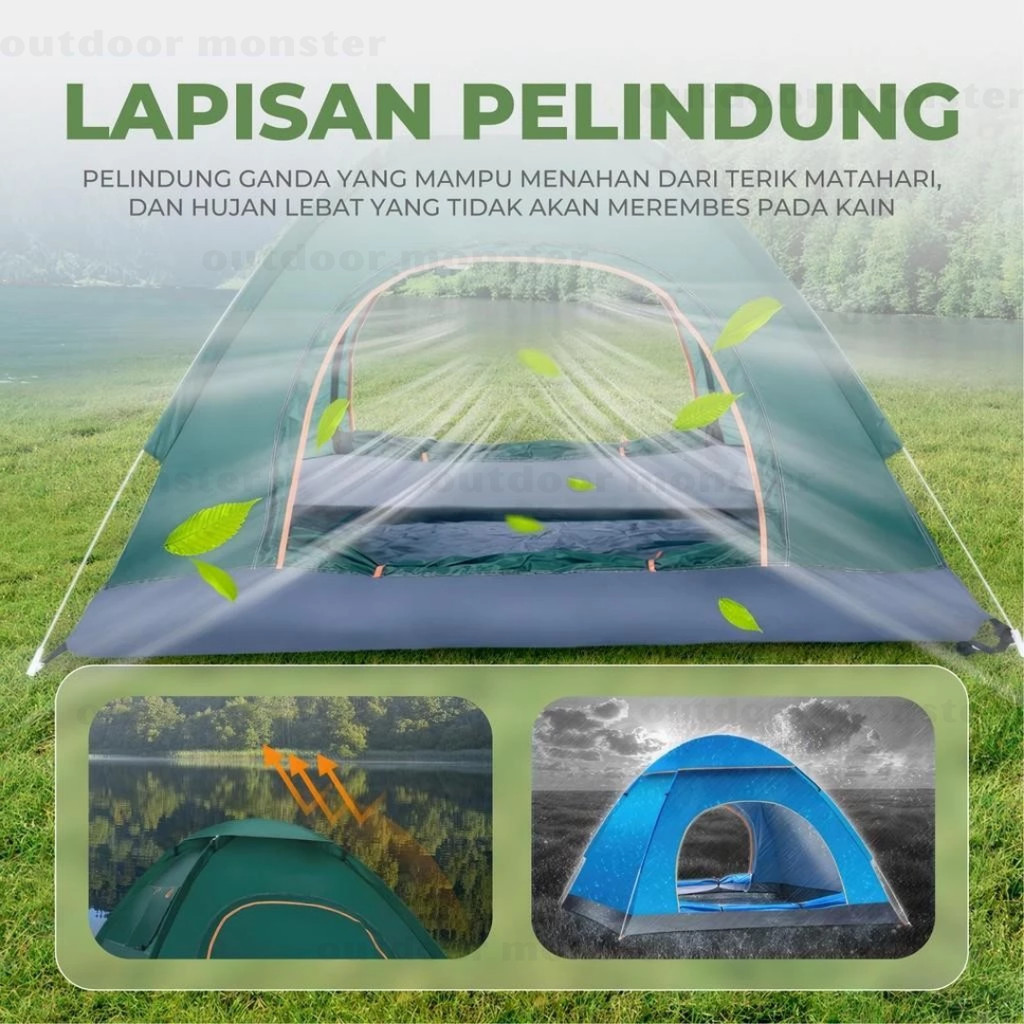 OUTDOOR Monster (GARANSI 1 TAHUN) Tenda Camping Otomatis Outdoor Kapasitas 3-4 Orang Tenda Gunung Tahan Angin dan Tahan
