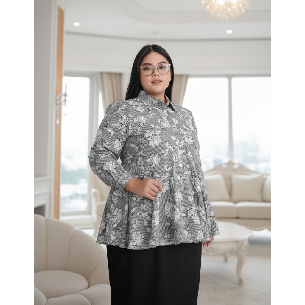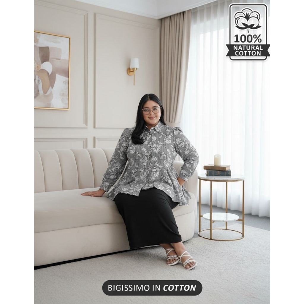 Bigissimo In Cotton - Magnolia Top Blouse Atasan Wanita Top Blouse Katun Stripe Floral Big Size Jumbo