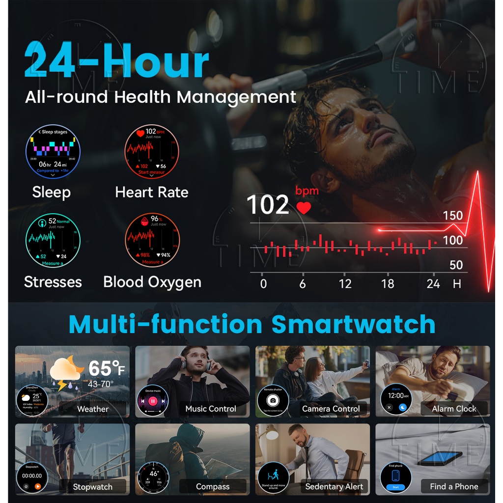 TIMEVER TR1PRO GPS Track Map AOD smartwatch lampu senter jam tangan pintar tahan air 3ATM jam tangan militer kompas smar
