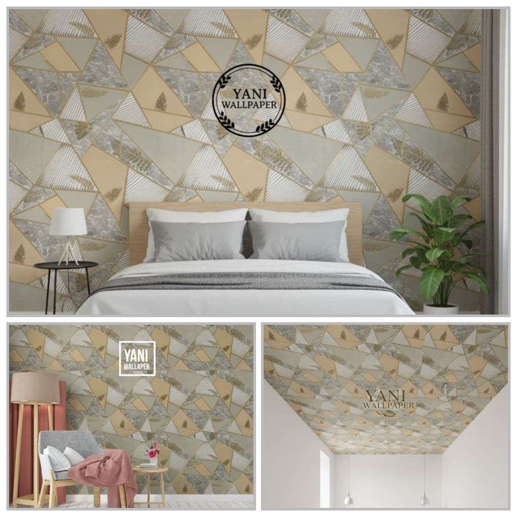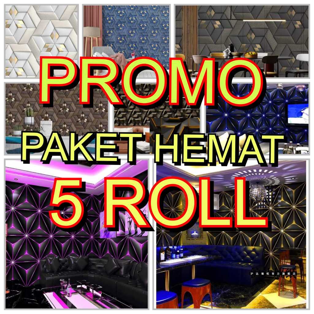 PROMO PAKET HEMAT 5 ROLL Wallpaper Sticker Dinding Motif Geometric Abu Putih Abu Silver Cakra Putih Cakra biru Deko