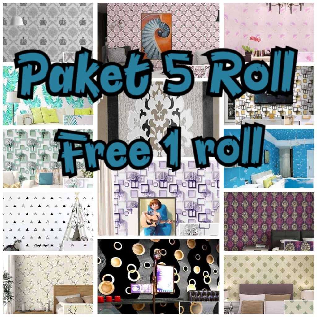 Paket Murah 5 Roll Free 1 Roll / Walpaper Dinding Murah/Sticker Dinding Anti Air/Wallpaper Dinding Kamar Tidur Elegant A