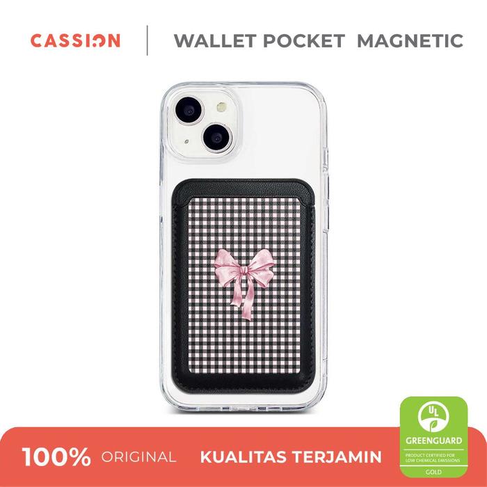 Card Pocket Wallet Holder Magnetic Cassion Pink Plaid - Black