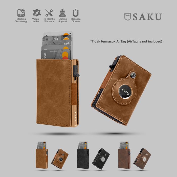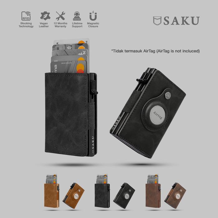 SAKU Dompet Kartu Anti RFID Kulit AirTag Pria Wanita Smart Card Holder Wallet Leather Black - Black Single