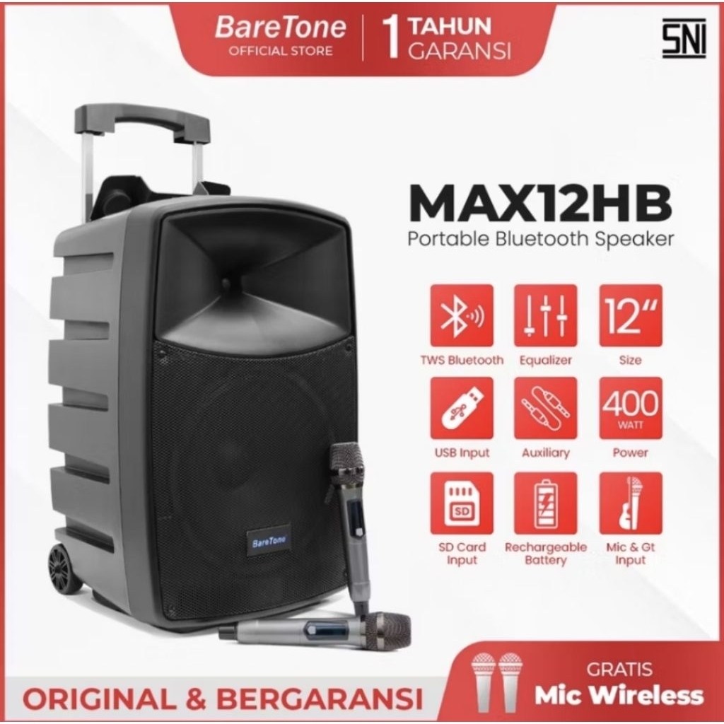 Speaker Aktif Portable 12 Inch Baretone MAX12HB 400 Watt Original