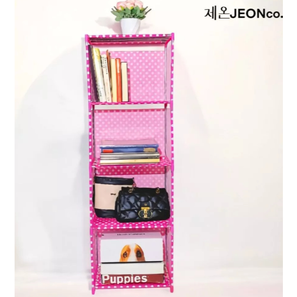 Rak Buku 5 Susun 4 Ruang Portable Pakai Penutup Belakang Merek Jeon/Rak Serbaguna/Rak Boneka