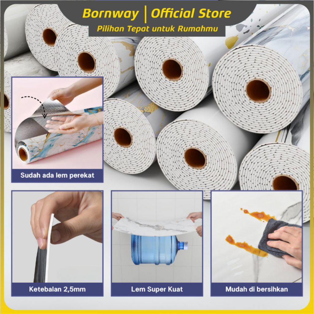 Bornway - Wallpaper dinding Vinyl Marble 1.2 x 2.8 Meter Tebal 2.5mm /Wallpaper Dinding Motif Vinyl Marble Foam Roll Sti