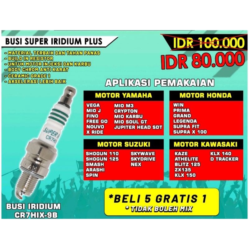 Busi Racing Brt Super Iridium Plus Klx Crf Wr Beat Vario Tiger Cb 150 Satria Fu Nmax