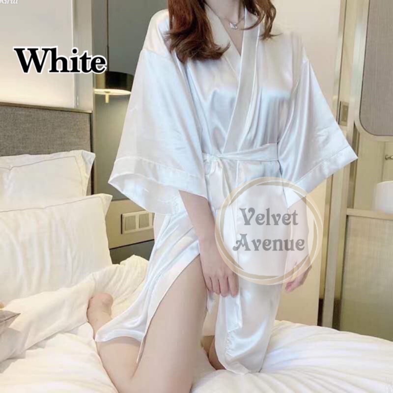 Kimono Bathrobe Silk Satin Sheine Bride Bridesmaid Rompi Make Up Rias Mandi Polos Cantik Murah