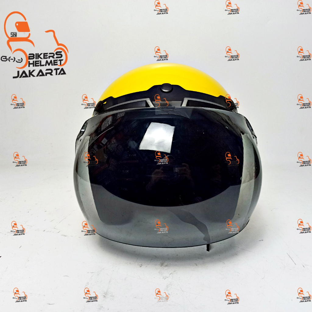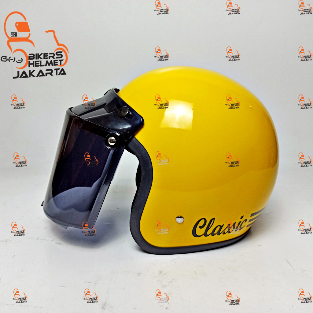 HELM BOGO CLASSIC POLOS YELLOW LEMON GLOSS BLACK HALF FACE RETRO KBS