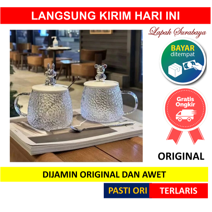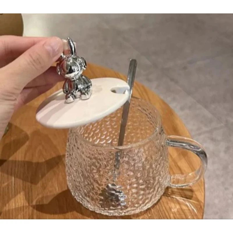 [ MUGBER ] MUG GELAS BEAR BER Aesthetic Kaca Sendok Souvenir Murah Boneka Cangkir Crystal Mewah Kopi Teh Minum Air Botol