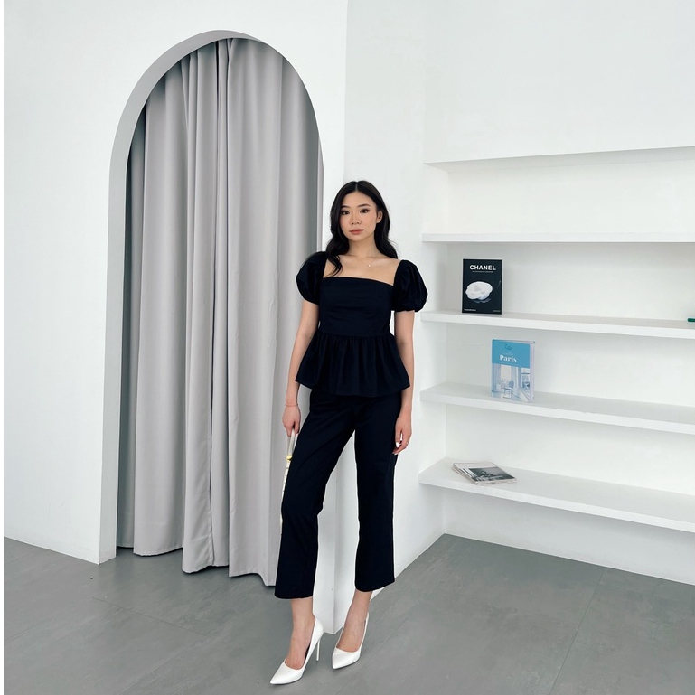 [Marveile] Faye Peplum Set Cotton Black/Cream S-L