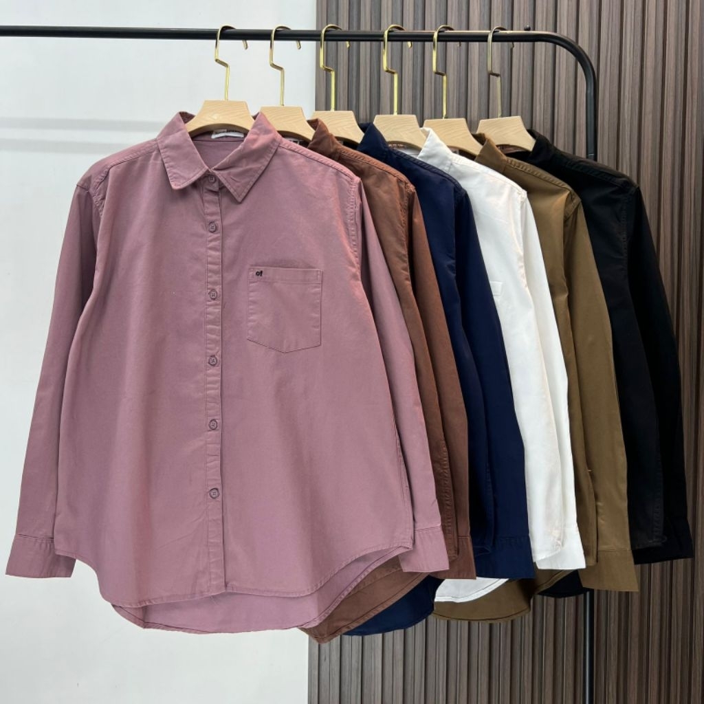 Kemeja Kantong Of Wanita Bahan Katun Bekaka Premium Lingkar Dada 118cm Gaya Casual