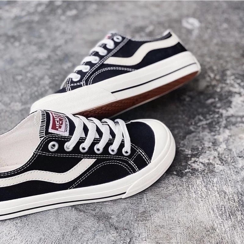 Sepatu Ventela Public Low Black Natural Pria Wanita Sneakers Kasual Sekolah Hitam Putih