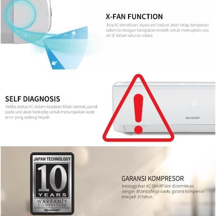 SHARP AC 1/2 PK AH A5ZCY- LOW WATT +PASANG + PIPA 3 Meter - garansi RESMI