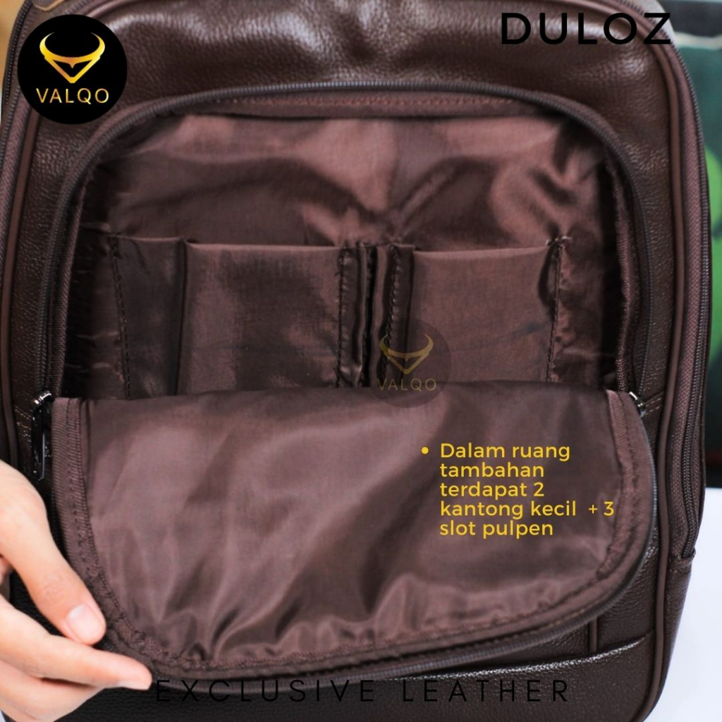 VALQO DULOZ Tas Ransel Kulit Sapi Tas Punggung Rangsel Laptop Kerja Backpack Pria Wanita