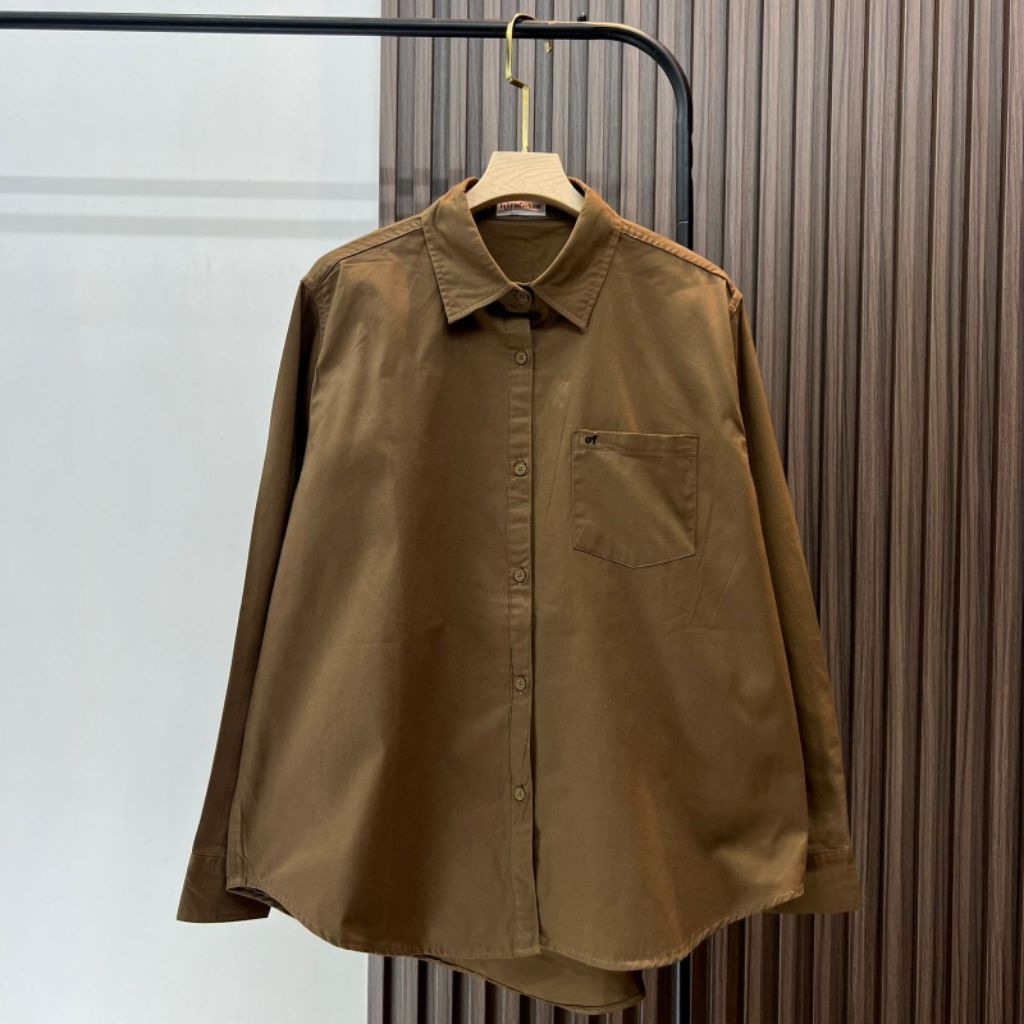 Kemeja Kantong Of Wanita Bahan Katun Bekaka Premium Lingkar Dada 118cm Gaya Casual