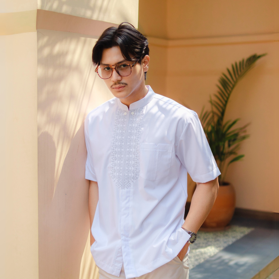 BASTOH Khairan Baju Koko Pria Dewasa Bordir Putih Lengan Pendek