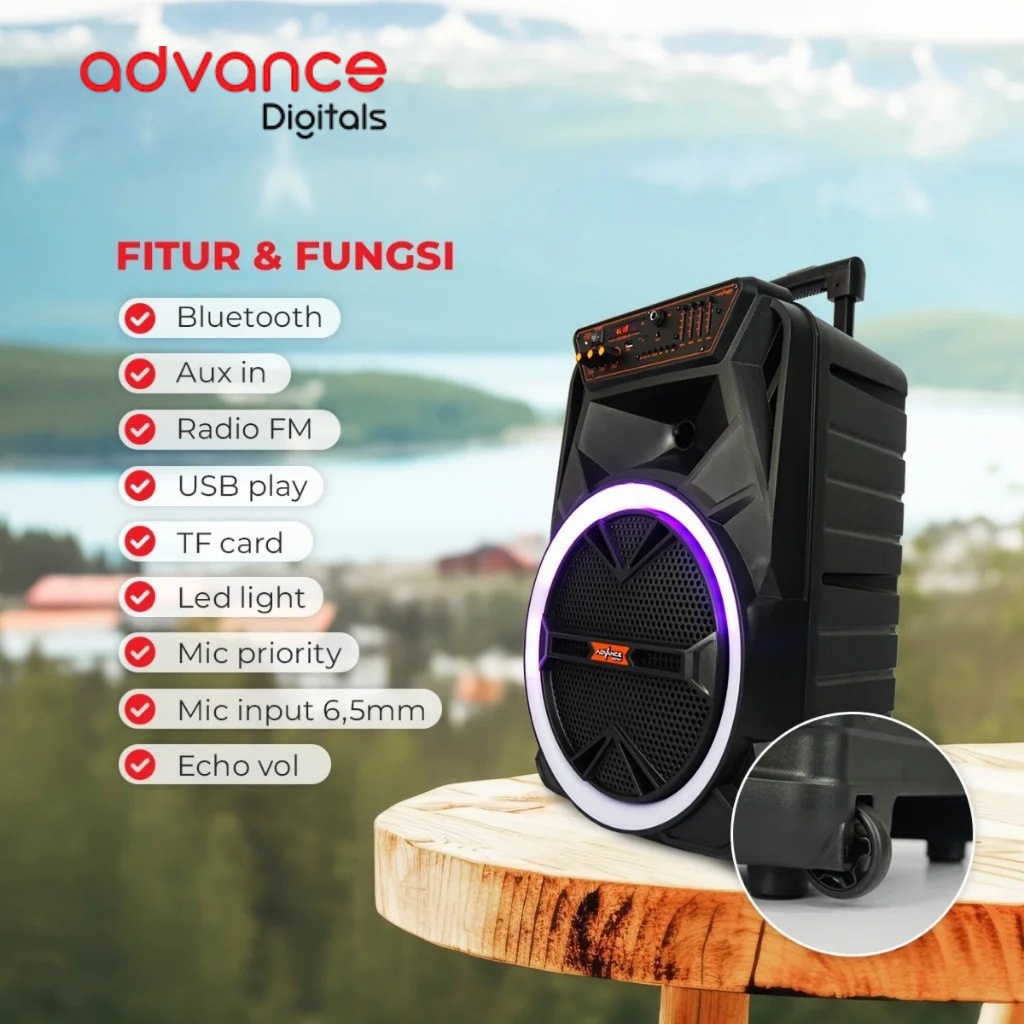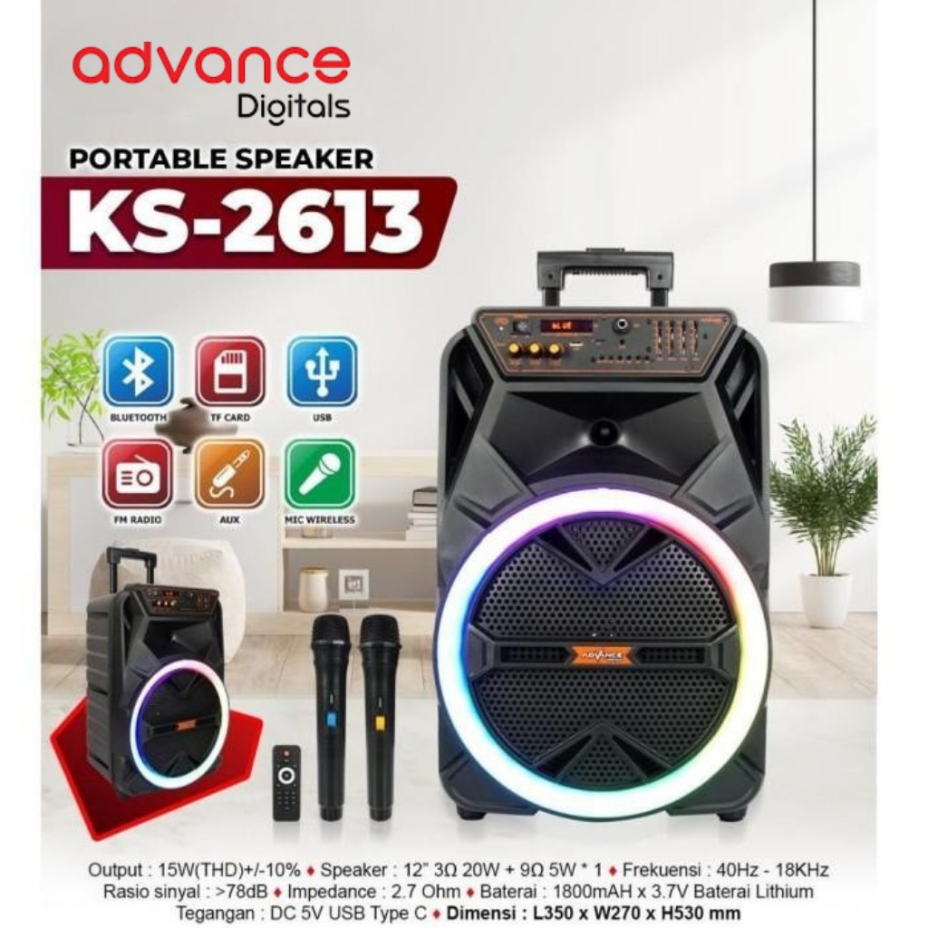 ADVANCE Speaker Portable KS2613 | KS 2613 Aktif 12 Inch Bluetooth Trolley Dengan Remote Bonus 2 Mic