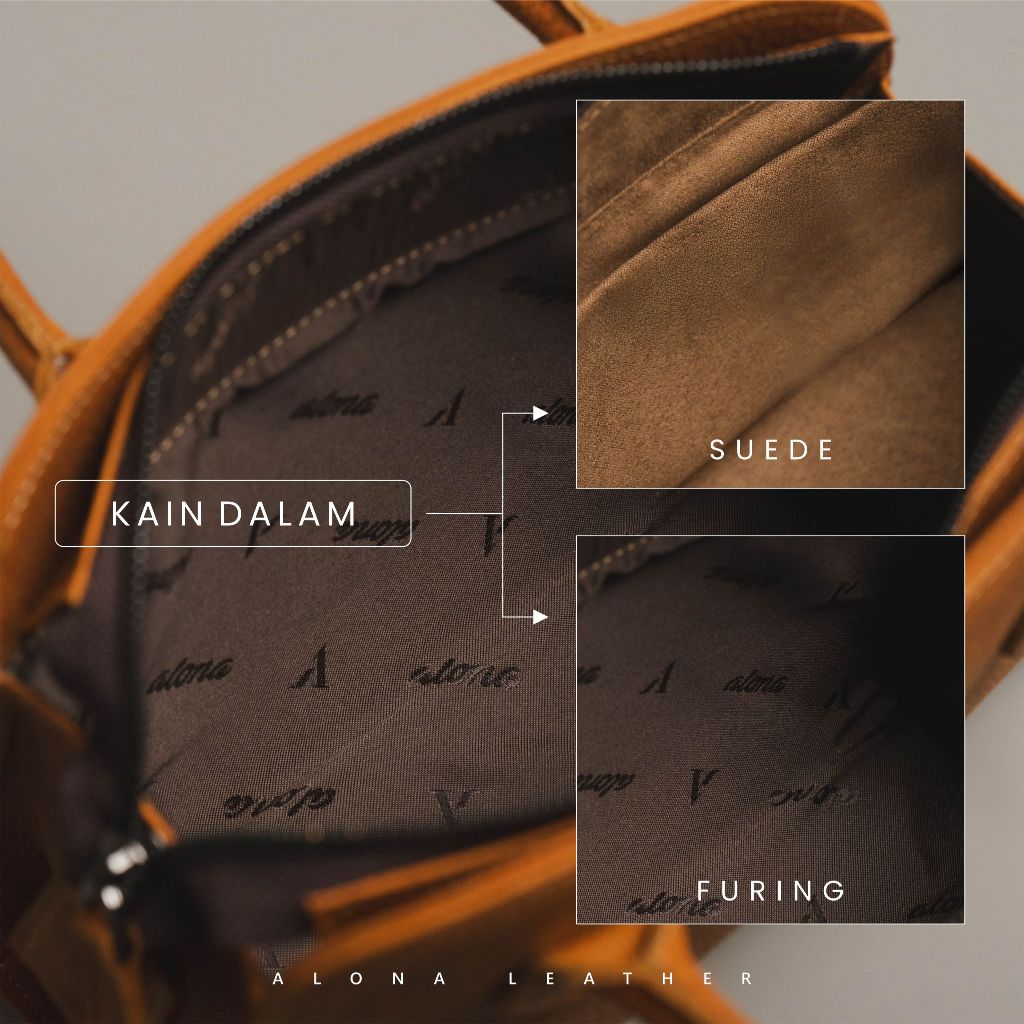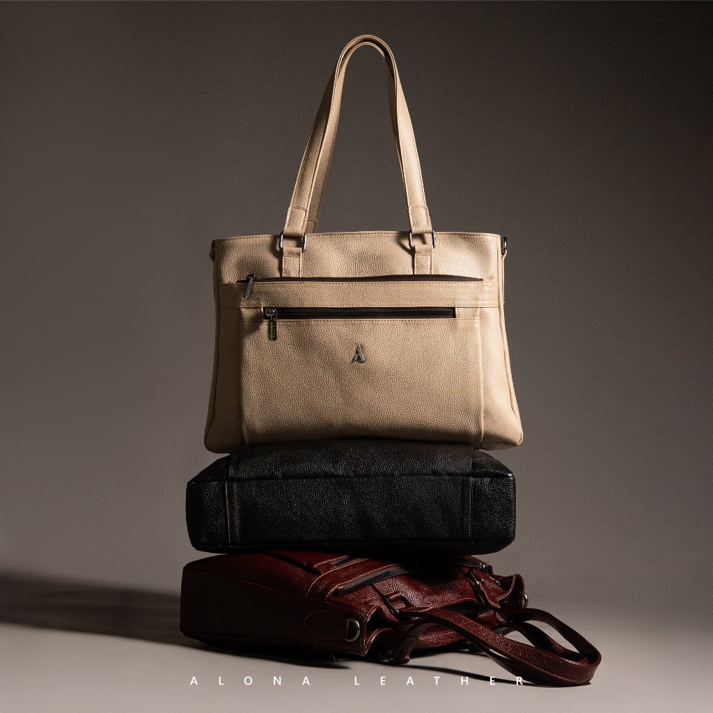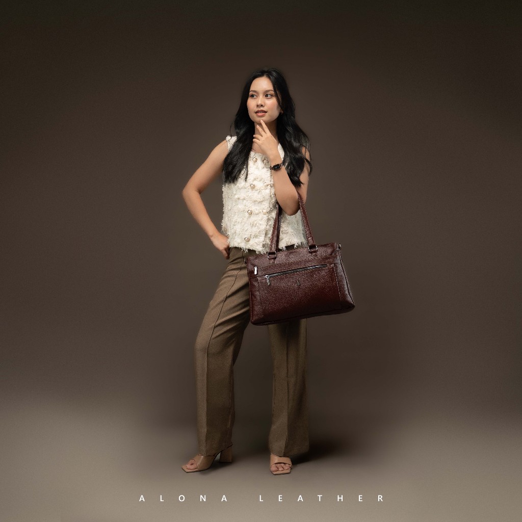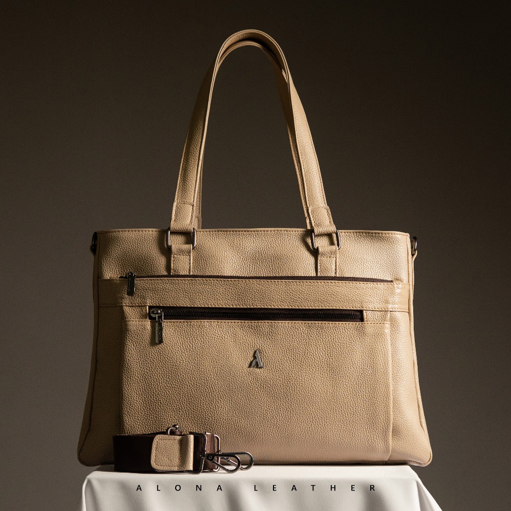 Alona Leather Lovata Totebag - Tas Laptop Wanita Kulit Sapi Asli Free Random Gift & Tali Selempang