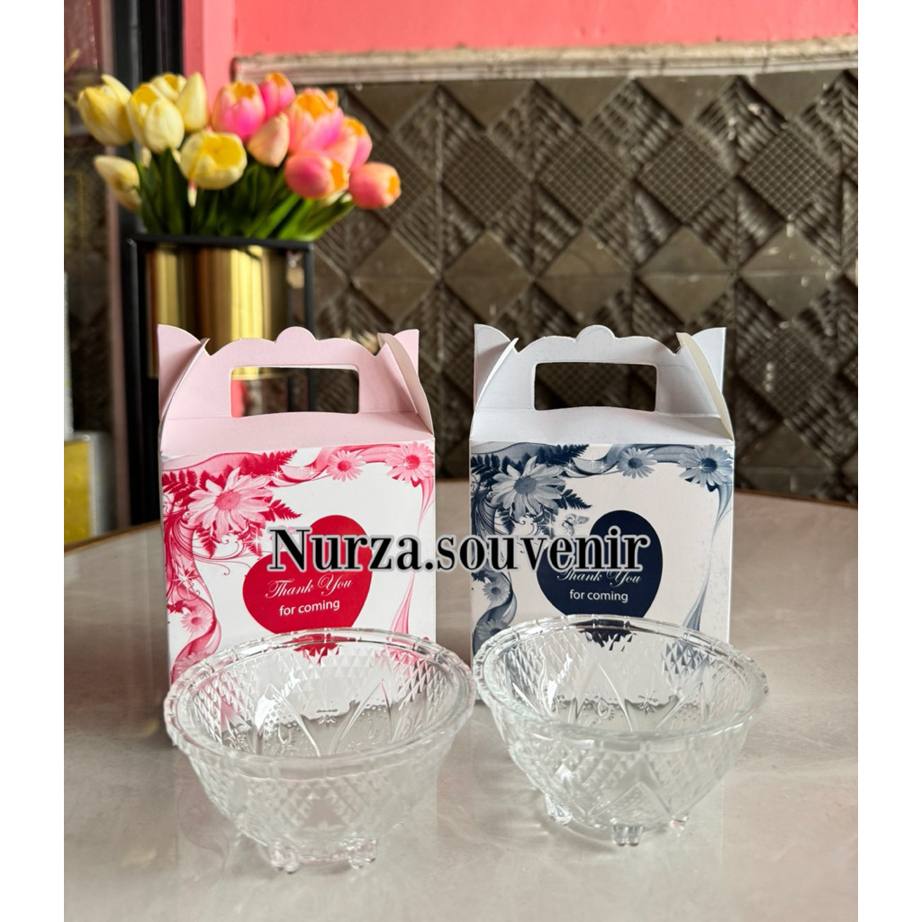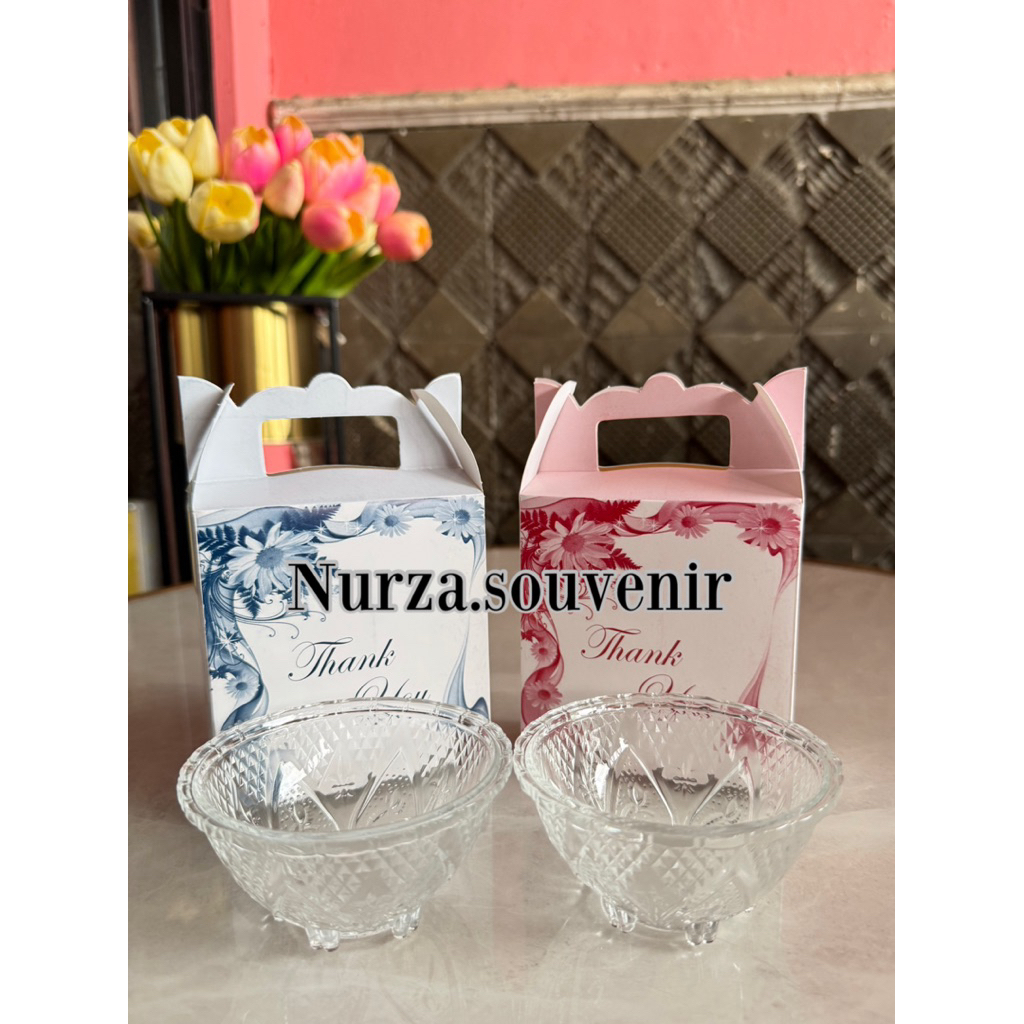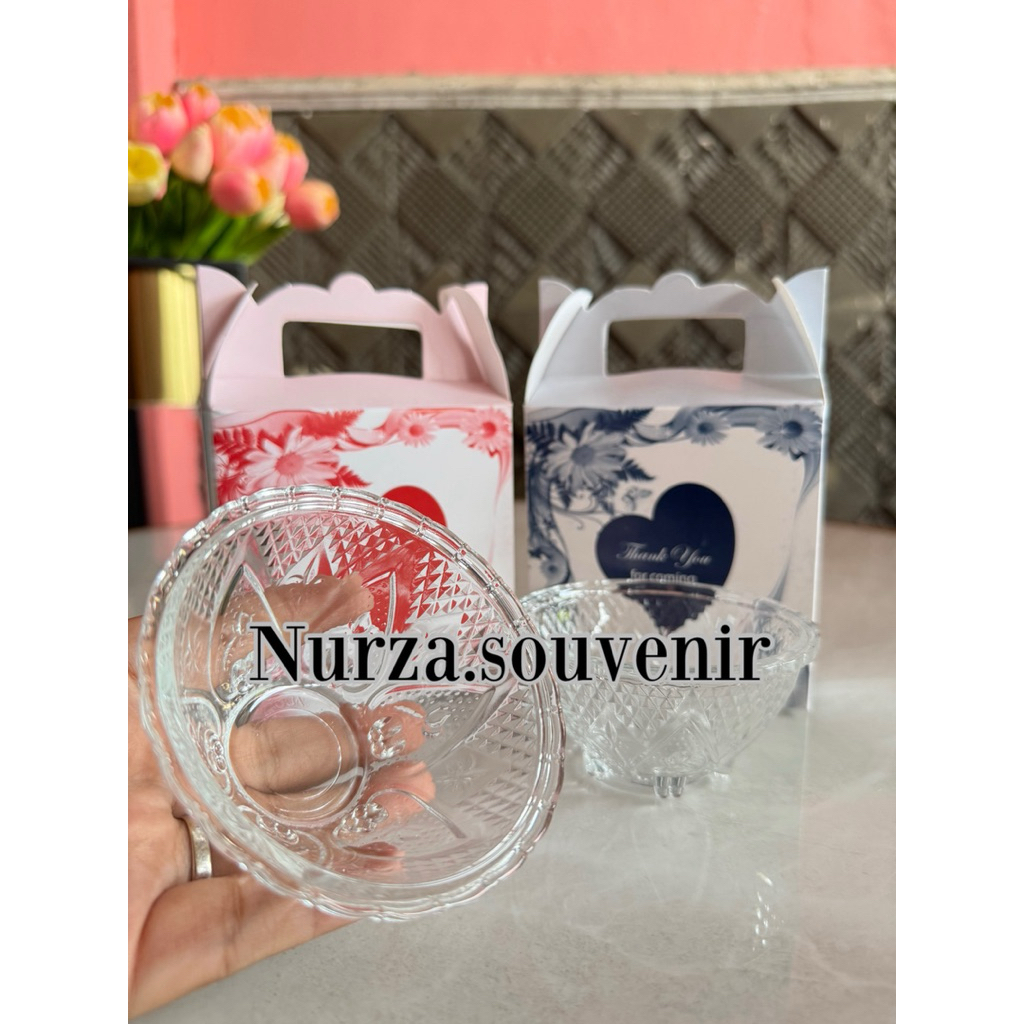 New ( Isi 50pcs ) Souvenir Mangkok Kaca Crystal Kkuningan mengkilap an Box Motif Nurza.souvenir