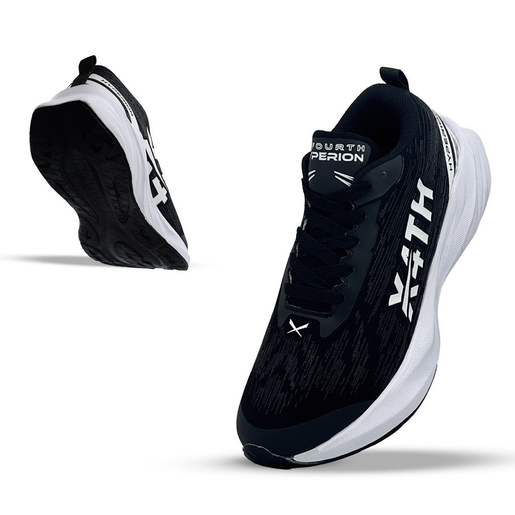 X-Fourth Hyperion Black White - Sepatu running Olahraga Daily Running Lari Sekolah Pria Wanita Sneakers Kasual Senam Fit
