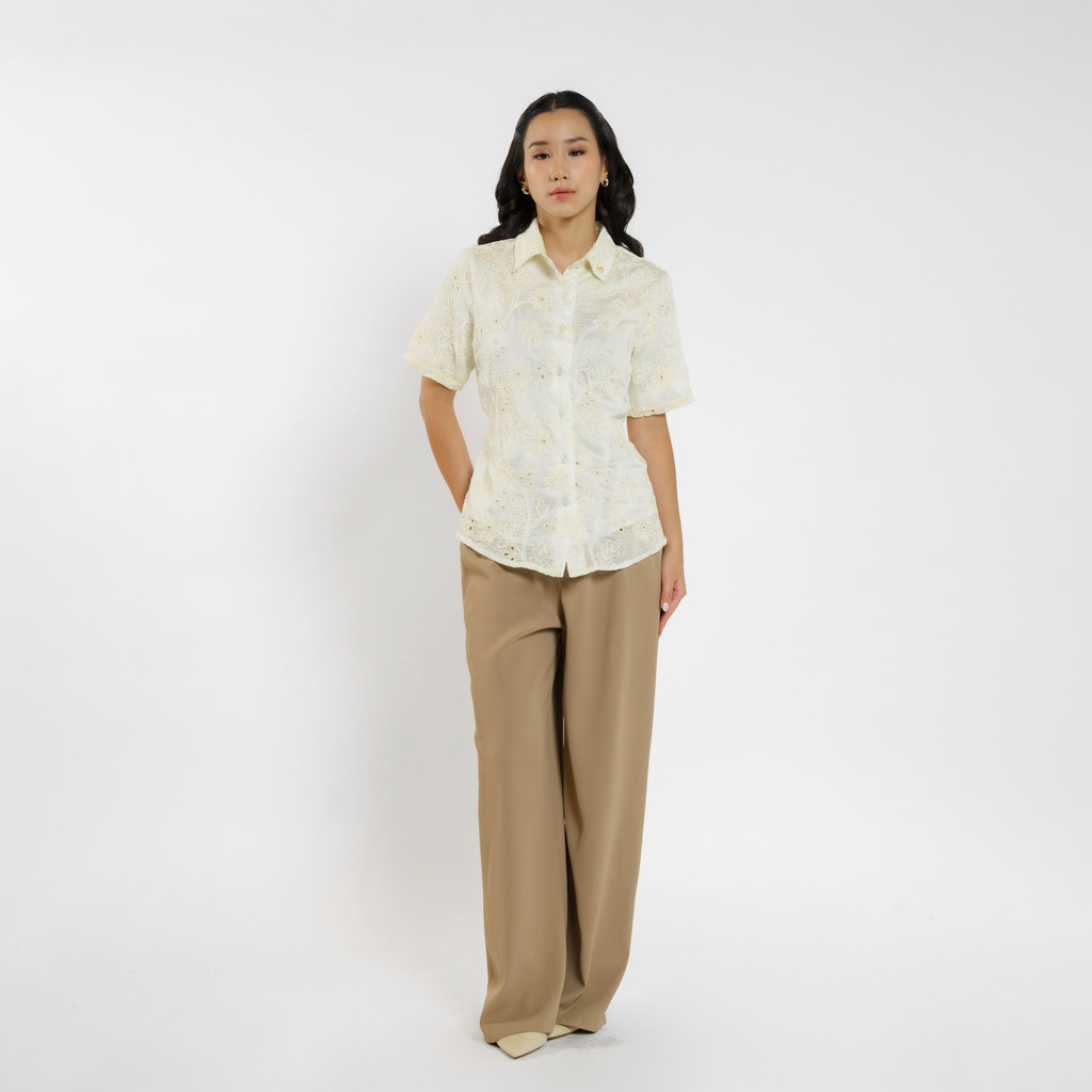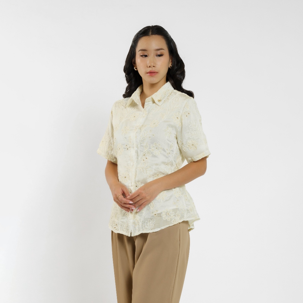 Momelca Bloom Embroidery Top - Atasan Lengan Pendek Wanita
