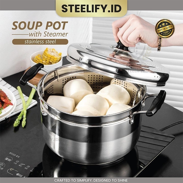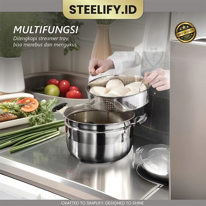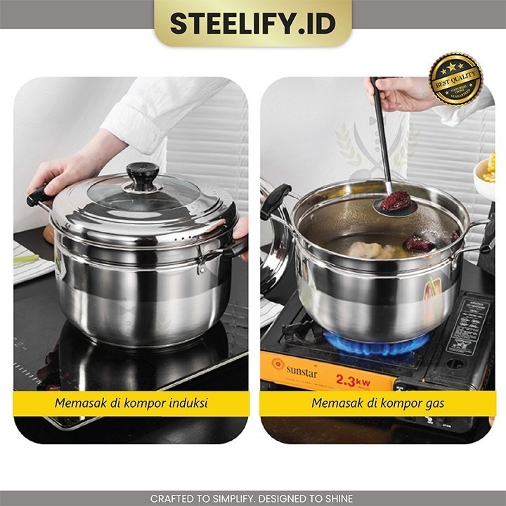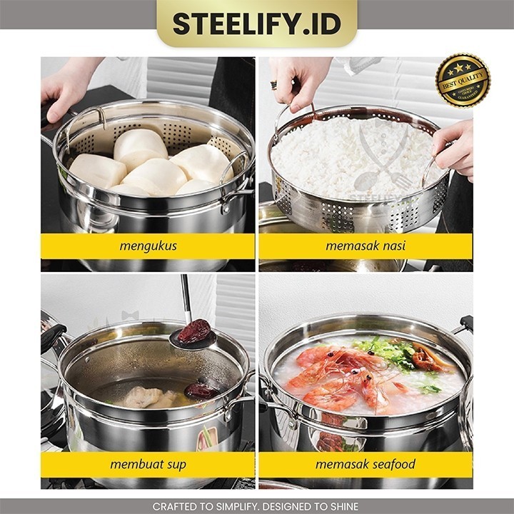 Japan Dandang Panci Steamer Kukus 22Cm 24Cm 26Cm 28Cm 30Cm Model Jepang Tinggi Tebal Stainless Steel Multifungsi Box
