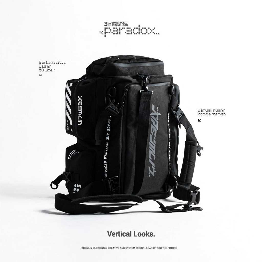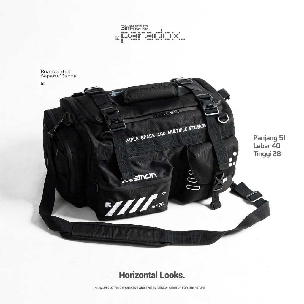 KREMLIN Multiple Duffle Travel Bag 3 in 1 Techwear Black - PARADOX