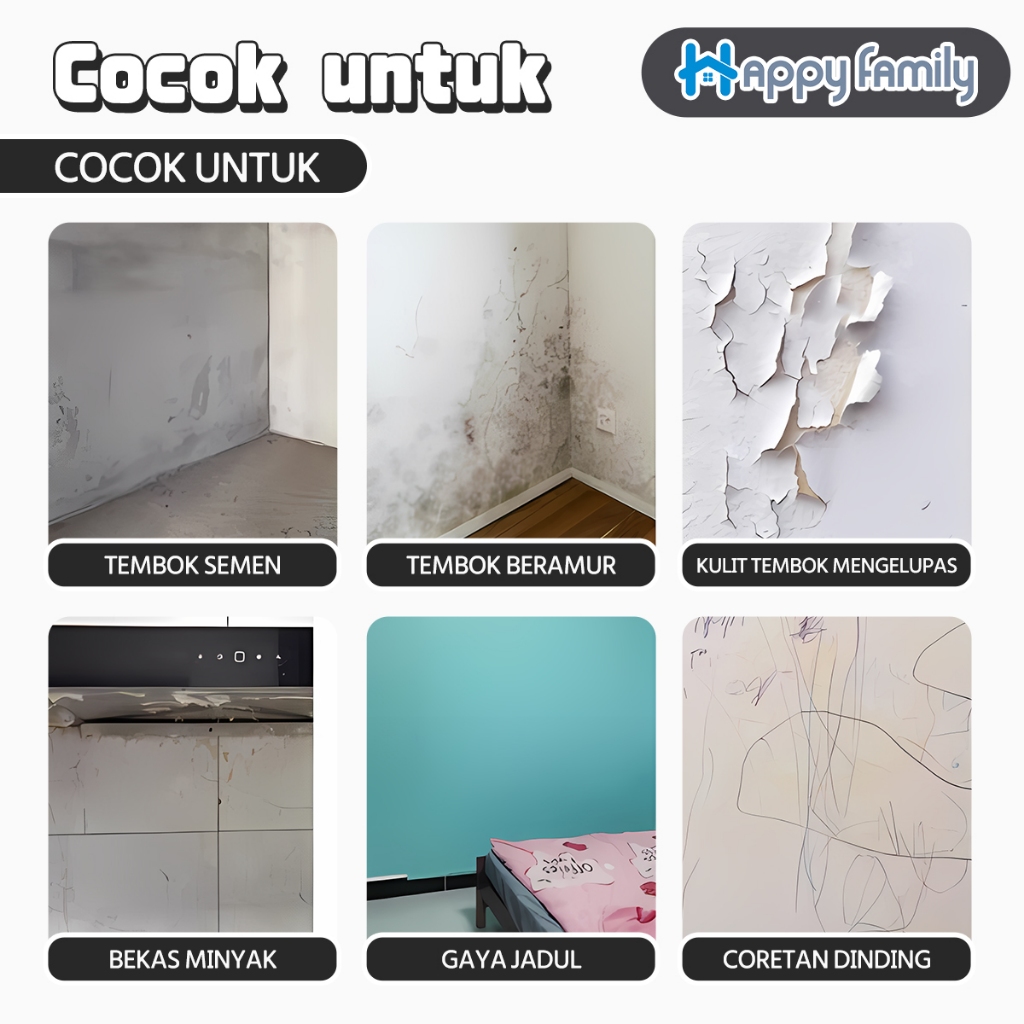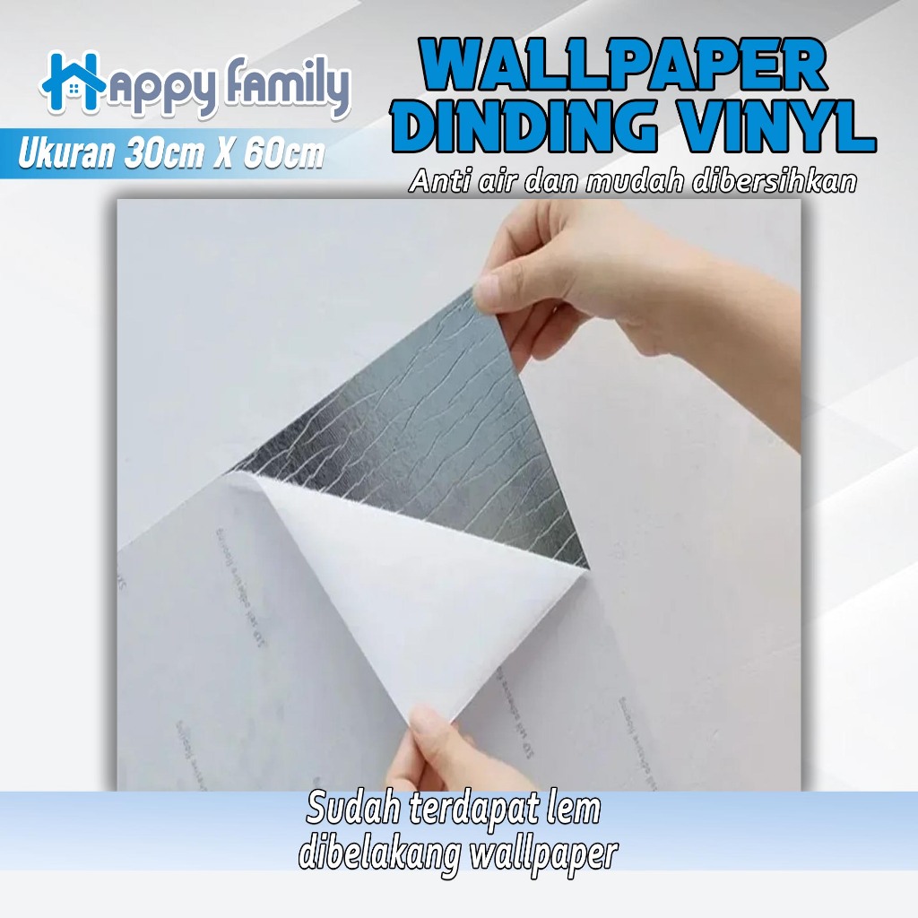 (HF) 20PCS Wallpaper Dinding Vinyl Estetik Anti Air Uk 30x60CM High Quality + Lem Perekat