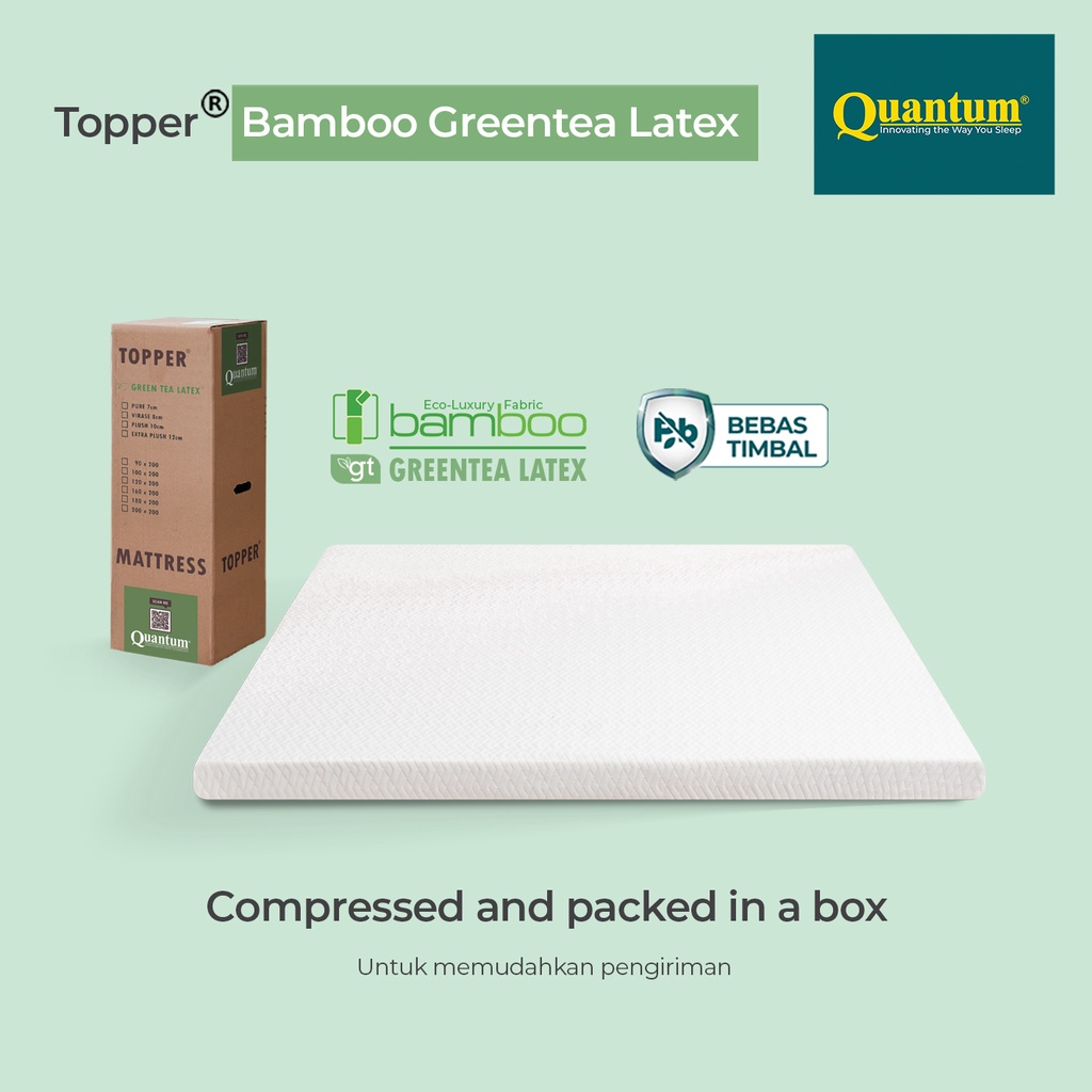 Topper Kasur Quantum Bamboo Greentea Latex Anti Tungau Nyaman & Bebas Timbal