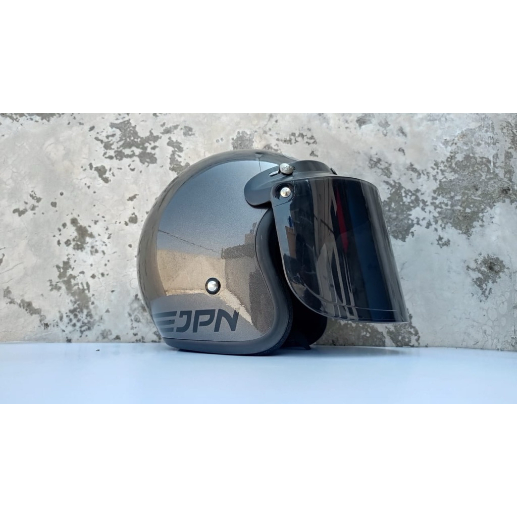 Helm JPN Abu Tua New Metalik Bahan Termoplastik