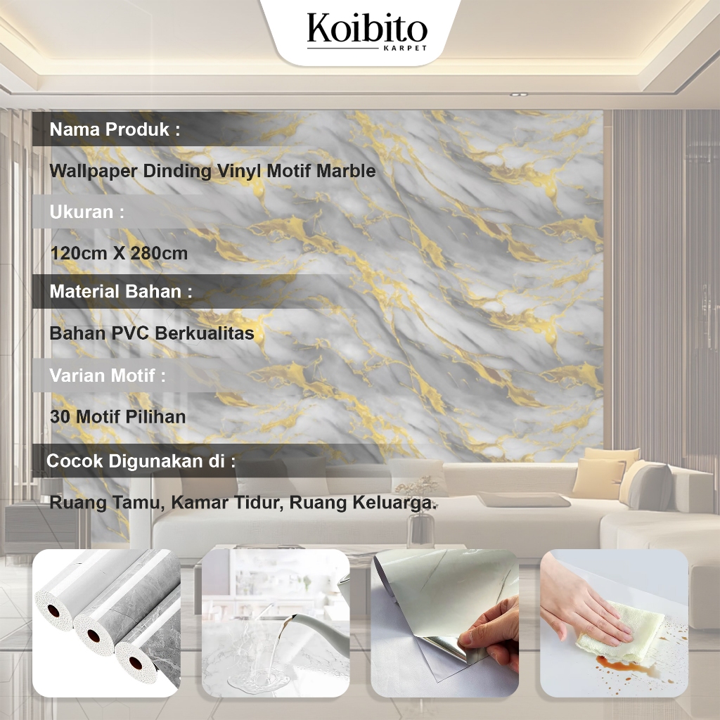 [Koibito] Wallpaper Dinding Vinyl PVC Motif Marbel UK 120x280 CM / Motif ern & Elegan