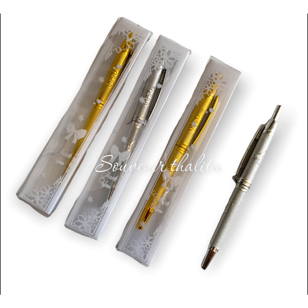 ISI 50 Pcs...Souvenir Pulpen kuningan mengkilap Perak Bunga Kkuningan mengkilap Mika Souvenir Hadiah