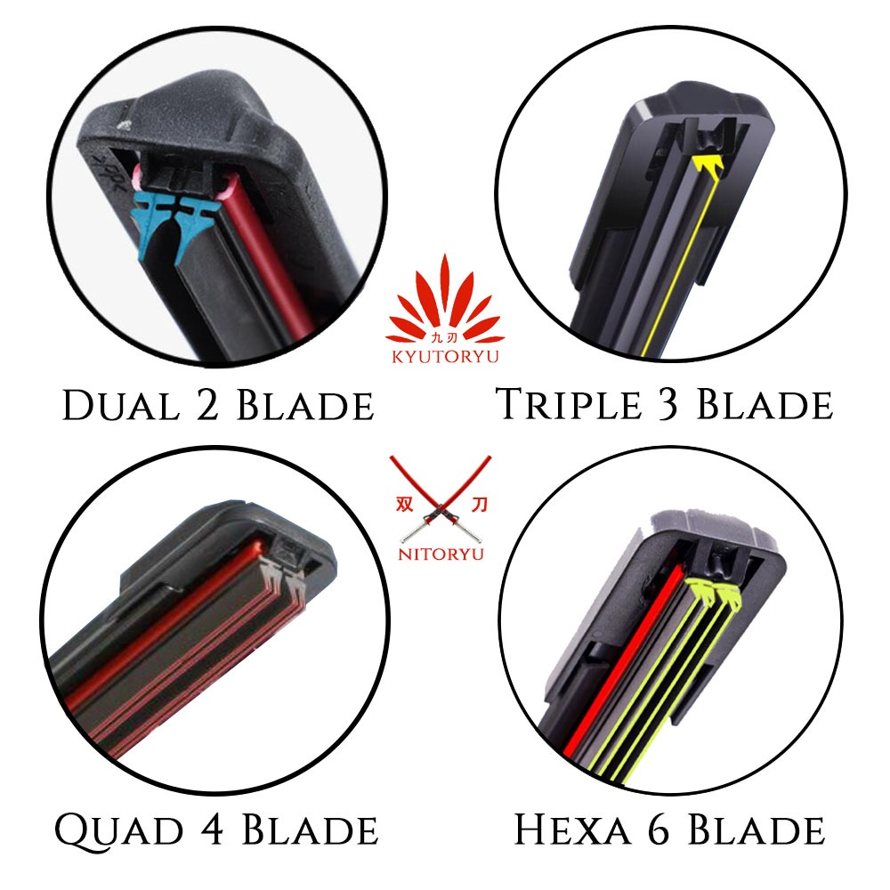 Wiper Dual 2 Blade Triple 3 Blade 4 Quad 6 Hexa Blade Hybrid NITORYU KYUTORYU Frameless UNIVERSAL NEW Technology Wiper M