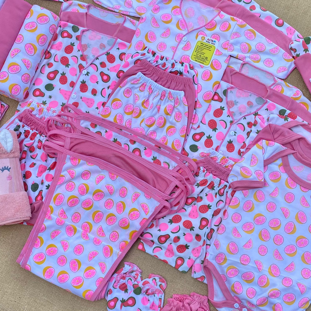 49 PCS paket hemat baju bayi baru lahir paket komplit baby NEWBORN serian pink buah ASYAM BABY