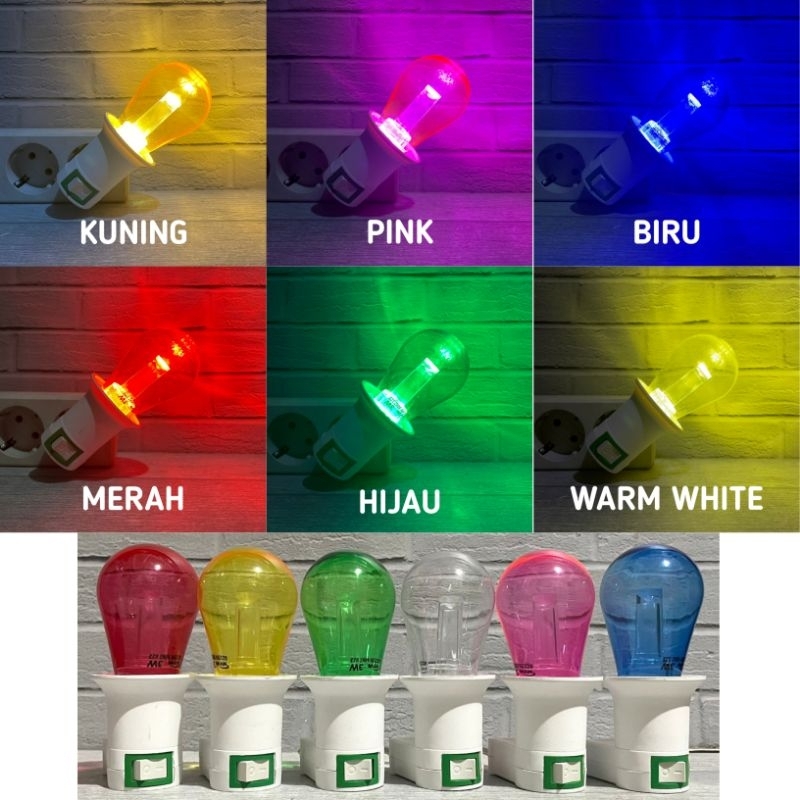 LAMPU TIDUR LED 3W WARNA SATU SET PAKET BOLAM + FITTING COLOK SAKLAR