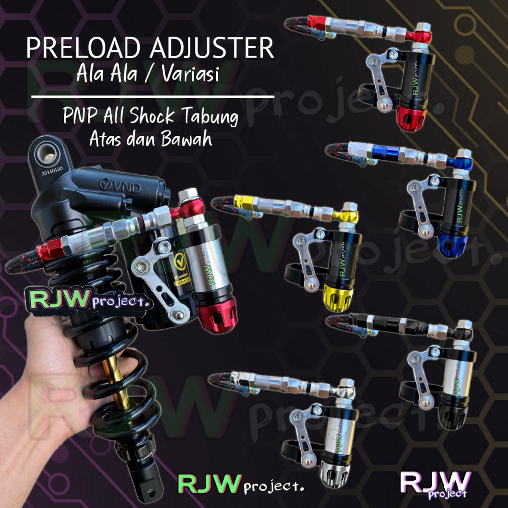 PRELOAD ADJUSTER ALA ALA V1.4 / Variasi, PNP ALL Shock Tabung Belakang Atas dan Bawah Full Alumunium CNC