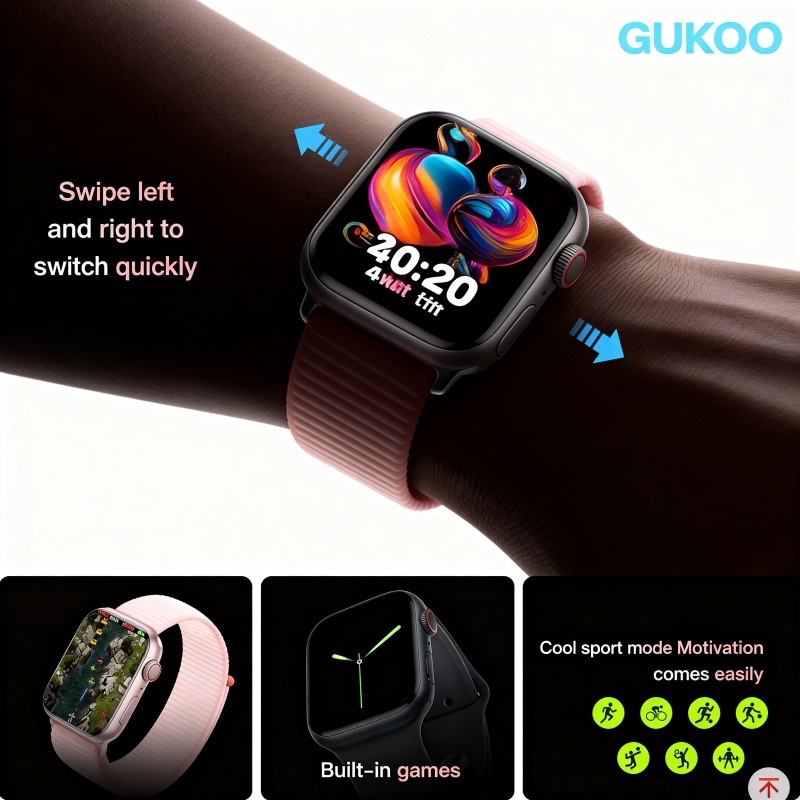 GUKOO TwatchX Smartwatch - Layar Sentuh HD, Monitor Detak Jantung, Tahan Air IP68, Baterai Tahan Hingga 7 Hari, Cocok un