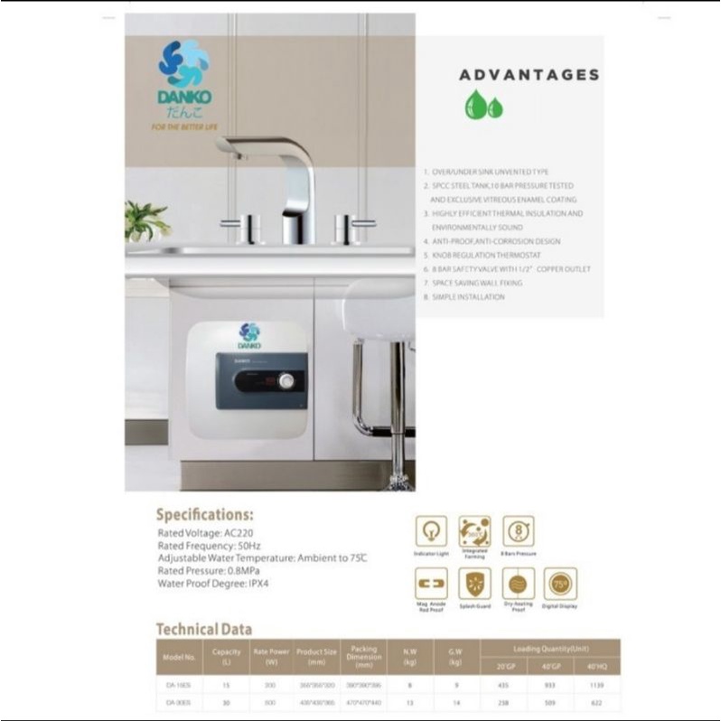 Water Heater Listrik Danko 10L/15L/30L Liter/Pemanas Air Kamar Mandi Danko DA15-ES