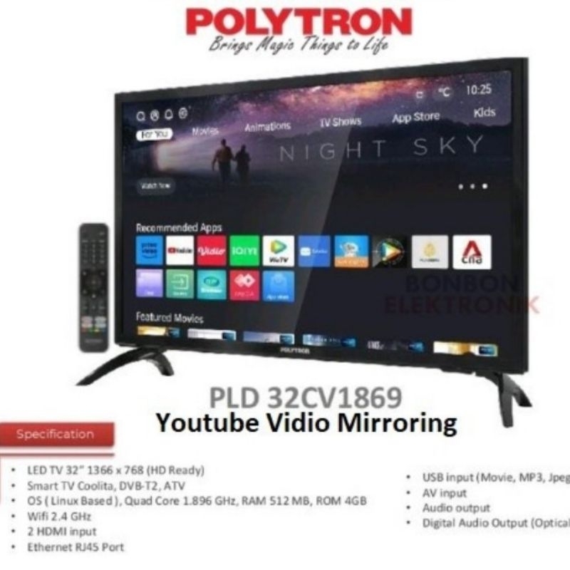 LED Smart TV POLYTRON PLD 32CV1869 Digital TV 32 Inch 32CV2269